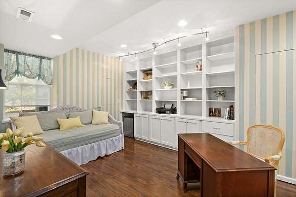 Welcome to this beautifully maintained, original-owner home perfectly placed in the serene enclave of The Willows, where privacy, space, and thoughtful design come together to create the perfect place to call home. Situated on a private, partially wooded lot surrounded by mature trees, this property offers an exceptional outdoor setting with an expansive, flat front yard (one of the most usable in the neighborhood) and a large, open backyard ideal for entertaining, recreation, or even a future pool. Enjoy evenings by the custom fire pit and stone patio with swing seating, surrounded by handcrafted stonework and natural beauty. A custom Brazilian hardwood deck extends the living space outdoors, while the location at the back of the neighborhood provides minimal through traffic and added privacy. Inside, the home offers spacious living with 9-foot ceilings, rich hardwood flooring, and thoughtful custom features throughout. The main level includes a dedicated office with built-ins, a well-appointed kitchen with added display lighting, gorgeous newer quartz countertops & designer backsplash, a functional laundry/drop zone with ample storage, and a laundry chute from the master bath. Upstairs and below, the home continues to impress with four full and one half baths, a finished basement great room, and a versatile second office or fifth bedroom/flex area with custom built-ins and a hidden closet providing a perfect private area for work, guests, or hobbies. Additional highlights include an oversized two-car garage, generous storage throughout, and a layout designed for both everyday living and entertaining. Ideally located just 1 mile from Stafford County's newest elementary and high schools, and minutes to I-95, Route 17, and Route 1, this home offers convenient access to shopping, dining, and major employers including Quantico, Fort A.P. Hill, and Dahlgren. Recent updates include new carpeting, a new gas stove and refrigerator, and a dishwasher and well pump replaced in 2025 - making this home truly move-in ready.