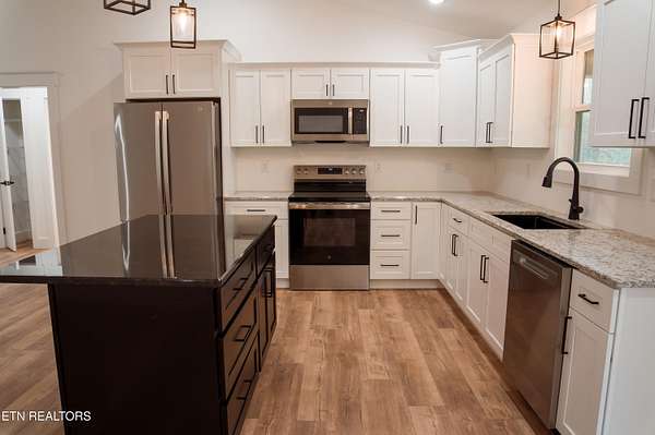 Brand-new construction on 1.93 acres with rare city park lakefront views in Oneida, TN. This 1,600 sq ft home features 3 bedrooms, 2 bathrooms, and an attached 2-car garage. Open-concept living with a spacious kitchen offering an island and granite countertops throughout the kitchen and bathrooms. Cathedral ceilings enhance the main living area and primary bedroom. The primary suite includes a tile shower and double vanities. Additional highlights include a large laundry room with extra storage, a generous pantry, and quality finishes throughout. Enjoy peaceful lakefront views from your back porch, all while being minutes to town, gym, and city park. Buyer to verify all information.
