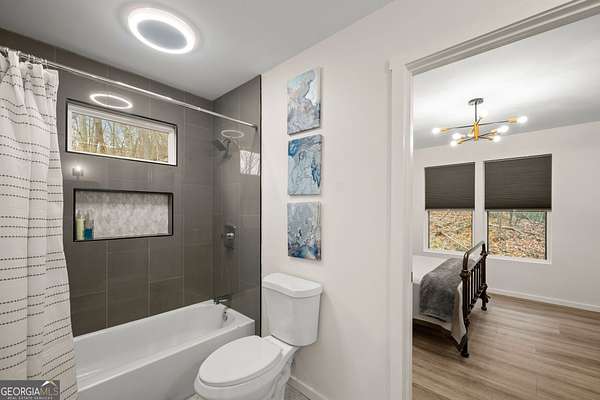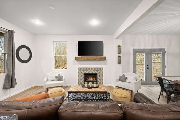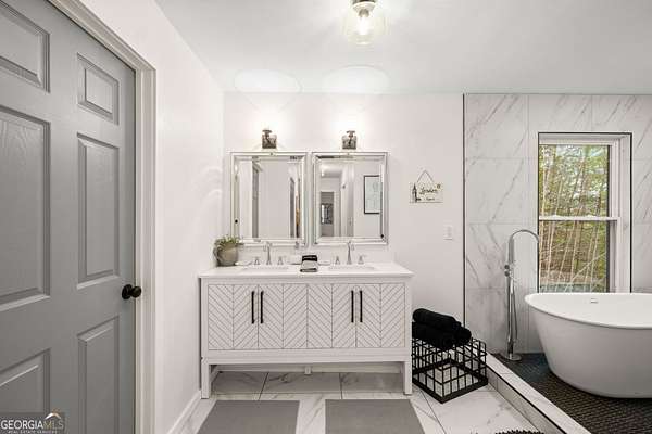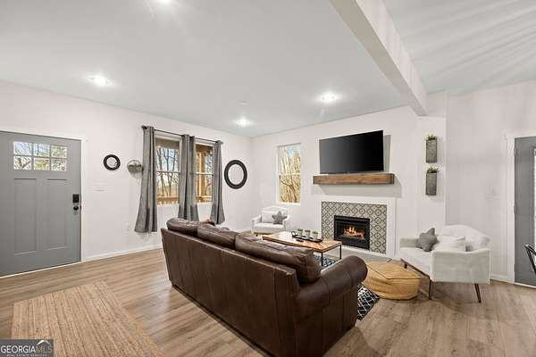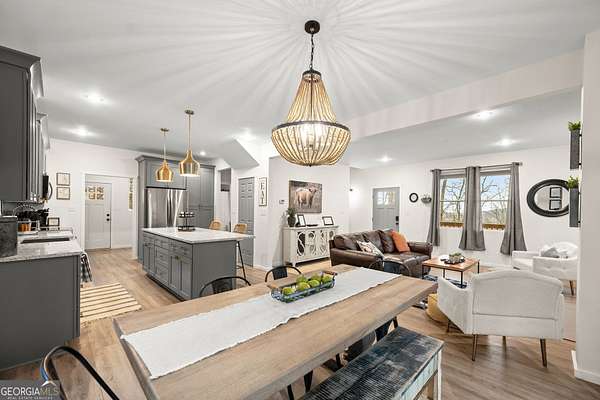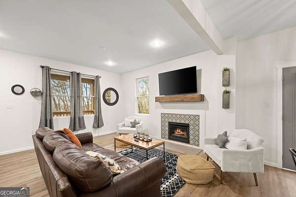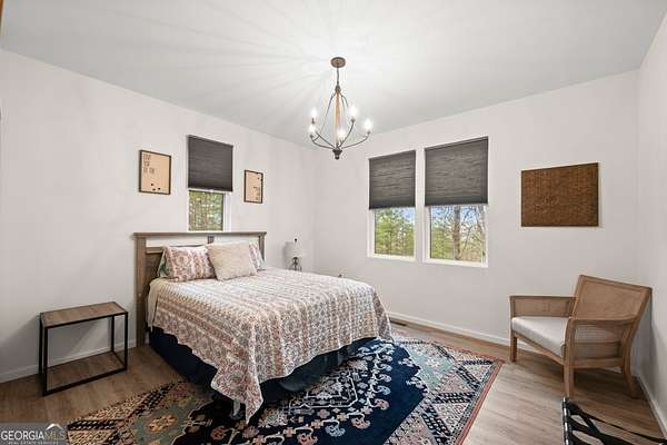 Est $2,871/moStunning new construction on just over 2 acres in a quiet, low-traffic community. Not in Dahlonega city limits-perfect as a primary home or short-term rental. Features a luxurious first-rate master bath with tile wet area, soaking tub, rain-head shower, and granite double-sink vanity. Two additional bathrooms with granite vanities and tile showers. Three bedrooms upstairs plus a main-floor bedroom ideal for guests or an in-law suite. Covered front porch, separate laundry with tankless water heater, and exterior entry. Blacktop driveway with ample flat parking at the top. Tree trimming could reveal mountain views. Turnkey, pristine condition-ready to move in or start hosting.