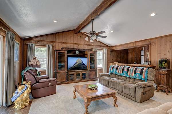 Your beautiful new home is ready and waiting for you, nestled on 2.2 private, park-like acres. With over 3400 sq ft, this 3 bedroom, 2 full/2 half bath home offers generous living space, custom design, and a peaceful setting, just minutes from town. Featuring two primary bedrooms and tons of extra living space, this home is ideal for multi-generational living and entertaining your guests. Two additional bedrooms share a bathroom, with separate entrances for added privacy and convenience. Spacious kitchen with an island open to the dining area. Take the party to the second living area with wet bar or on the patio surrounded by trees and privacy! You will feel at home the moment you drive up to the property, and you will have plenty of space for parking in your 3 car garage and concrete driveway. Whether you're visiting with your guests by the cozy fireplace, in the sunroom, or in the back yard, you will love loving come and will never want to leave. Call today for a personal tour!