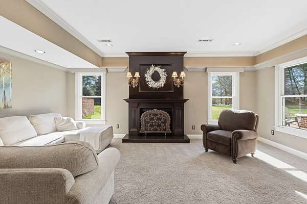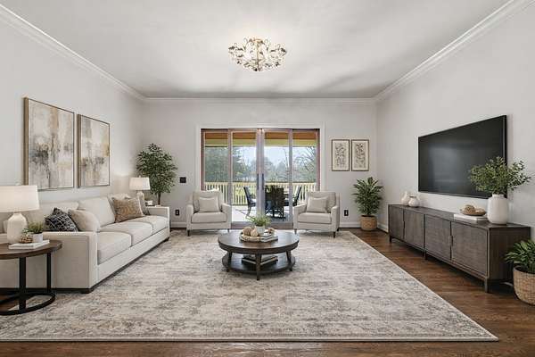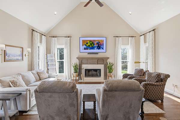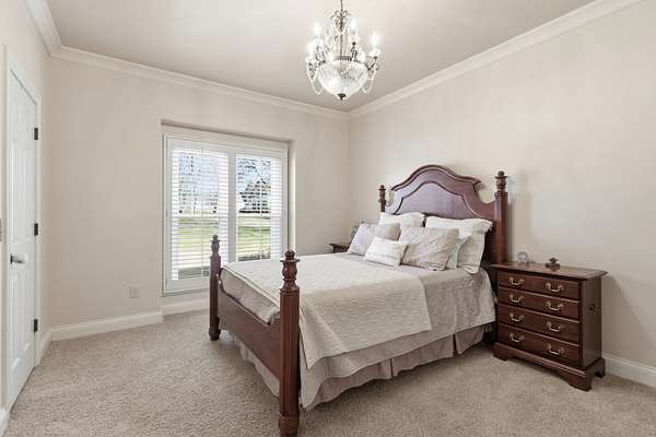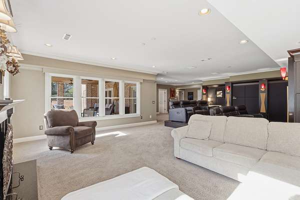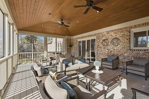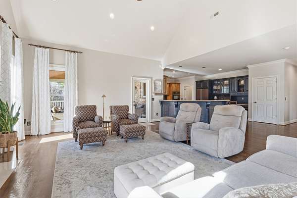 Discover the Legends Ridge home you've been waiting for - offering true one-level living with a fully furnished walk out basement. Thoughtfully designed and beautifully appointed, this residence is ideal for entertaining, featuring generous rooms that flow seamlessly from formal to informal spaces The main level hosts an expansive primary suite, secondary bedrooms, plus gracious living and dining areas. The screened in porch is straight out of Southern Living providing a peaceful outdoor retreat overlooking the 1.54 acre level lot - perfect for a future pool. The lower level offers exceptional versatility, showcasing a vintage style movie theater, an additional bedroom and bath, a bunk room for the kids, home office and abundant storage. Car enthusiasts will enjoy the rare 4 car garage capacity - 2 on the main level and 2 on the lower level - plus dual driveways for convenience. Community amenities include a pool, tennis courts, playground, clubhouse and a stocked fishing pond - rounding out the coveted Legends Ridge Lifestyle.