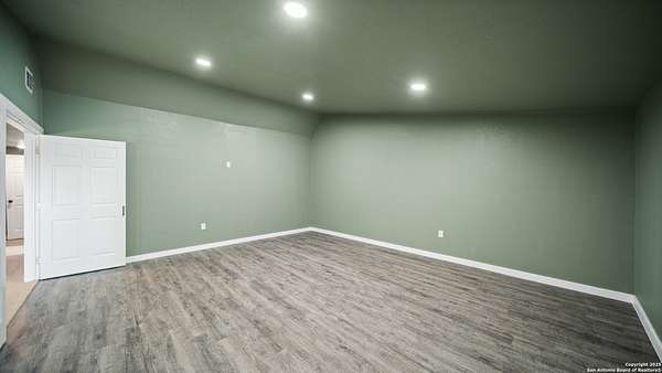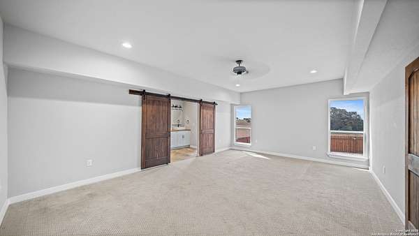 Discover the charm of the countryside with this expansive and contemporary barndominium situated on five acres within the highly desirable Lake Valley Estates subdivision and served by the equally sought out La Vernia Independent School District. This remarkable residence features one of the most substantial living spaces in the area, encompassing nearly 3,600 square feet. It offers seven bedrooms and three full bathrooms, with the versatility of two upstairs rooms that can also serve as a home office and an inviting media room. Uniquely, this property in La Vernia is equipped with its own well, a reverse osmosis water purification system, and a septic system. Upon entering through the custom iron front door, you are welcomed by soaring 22-foot ceilings in the great room. The open floor plan provides an abundance of space for entertaining, making it ideal for large gatherings, and includes a coffee bar with generous cabinet storage. The kitchen features custom cabinetry complemented by butcher block countertops throughout. The spacious primary bedroom boasts a custom ceiling with recessed lighting and adjoins via two great sliding barn doors a palatial bathroom complete with a vaulted walk-in rain shower and a separate tub, offering a serene retreat. The first floor comprises three bedrooms and two full bathrooms, while the second floor includes one full bathroom and four additional rooms, two of which can be adapted as an office and an entertainment space such as a media, pool, or playroom, offering numerous possibilities. The property also features a rear deck within a fully fenced inner backyard and a partially fenced outer border, perfect for enjoying the tranquility of the countryside and stargazing. A significant grove of oak trees on the property presents various opportunities, such as a treehouse or a picnic area. For those with a passion for gardening, a designated planting bed is available. Furthermore, the property offers ample storage space for equipment with three separate sheds, all monitored by a security camera system. This exceptional property, with its substantial lot and living area, presents a wealth of potential for its future owner. We encourage you to schedule a visit to experience it firsthand.