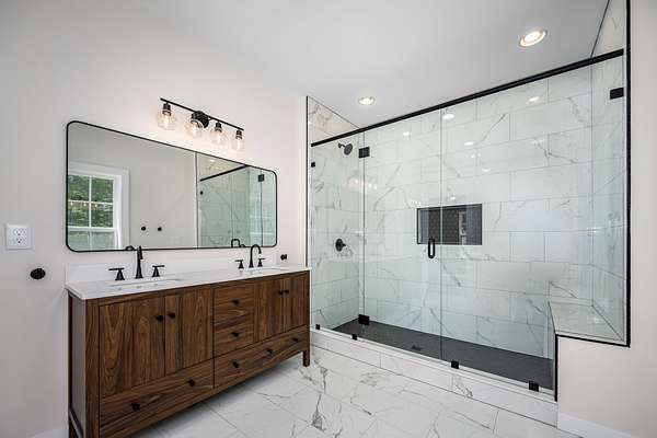 The owner's suite offers a relaxing retreat after a long day, complete with a spa-inspired bathroom and a floor-to-ceiling tiled shower. From the back porch, take in serene views of the creek that winds through the property--an ideal spot for morning coffee or unwinding in the evenings.