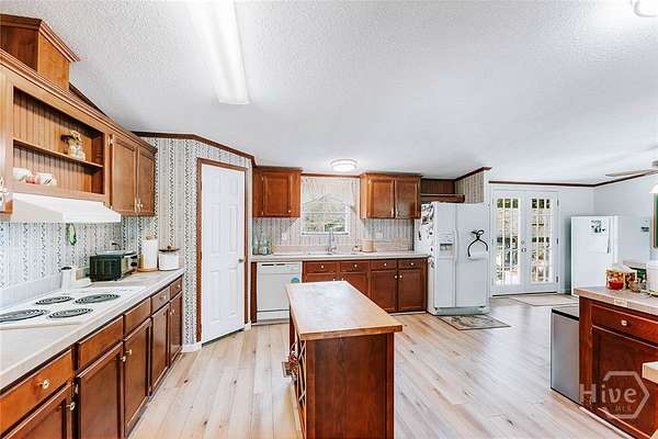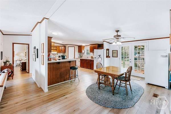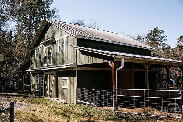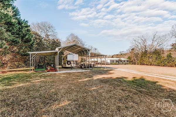 Set on 11.67 acres within the city limits of Maxeys, Georgia, this spacious 4-bedroom, 2-bath home offers 2,432 square feet of comfortable living with room to work, play, and farm. Located in an area eligible for the Brightwell Scholarship, and just 24 miles from the University of Georgia and downtown Athens, this property combines convenience with country charm. The home features a functional split-bedroom floor plan with three bedrooms and one bath on one end, and a private primary suite with en-suite bath on the other. Living spaces include a welcoming living room, dining room, kitchen, laundry room, and a large great room that could easily serve as a game room, home office, or additional living area. Enjoy outdoor living from the large covered back porch overlooking the fenced backyard, perfect for relaxing or entertaining. Ideal for animal lovers or hobby farmers, the property includes fenced pastureland and a well-equipped barn featuring six Dutch-door stalls, a large hay loft, tack room or office space, hot water, and an A/C unit-ready for your farm animals. Additional improvements include a storage building, camper shed with lean-tos on both sides, and a 24' x 32' metal carport. This rare in-town acreage offers endless possibilities for farming, recreation, or simply enjoying wide-open space while remaining close to Athens amenities.