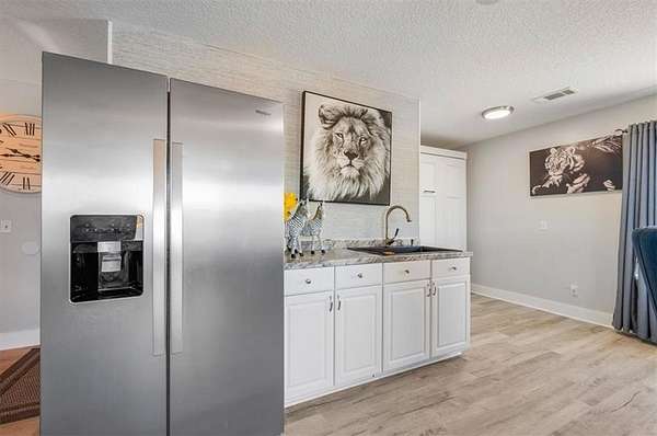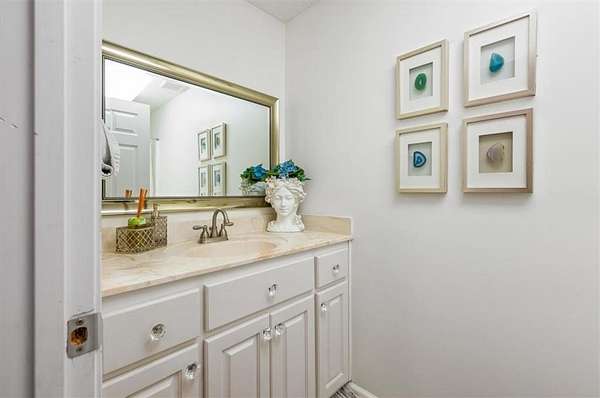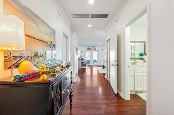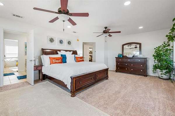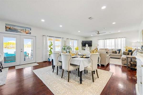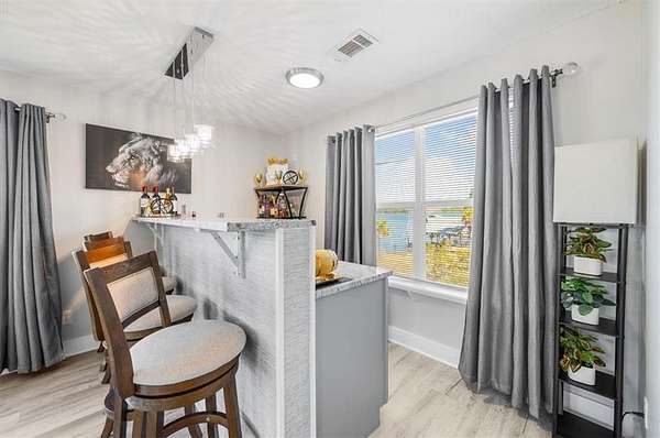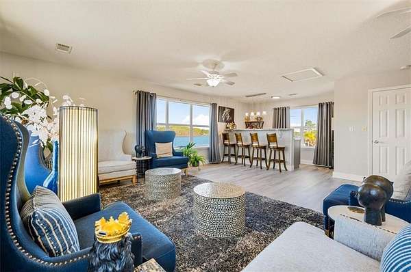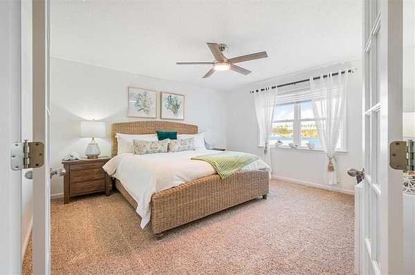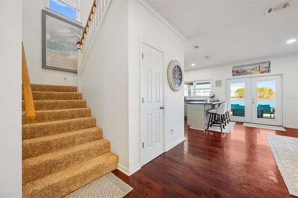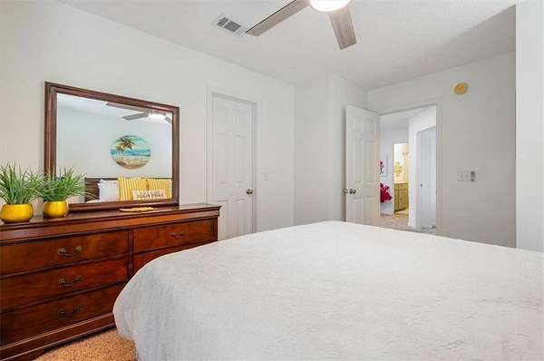 The attached garage has been transformed into a sunken sunroom, complete with a second refrigerator and a custom barn-door enclosure for the water softener system and hidden storage. Upstairs, you'll find four spacious bedrooms, including the luxurious primary suite with a private screened balcony overlooking the lake--an ideal space for peaceful mornings. The primary suite features a thoughtfully designed layout with a large bathroom separating the bedroom from the custom walk-in closet, which includes a dedicated vanity area. The laundry room is also located upstairs with access to attic storage.