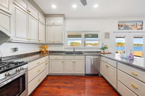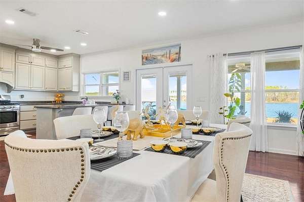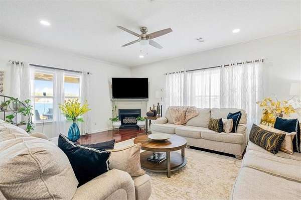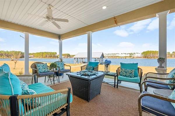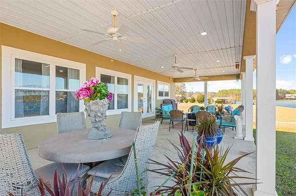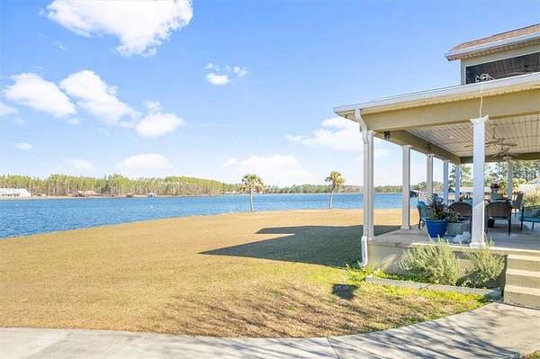 Welcome to lakeside living in the gated community of Miles Landing, where this beautifully updated two-story home enjoys panoramic views of the private 110-acre Lake Henry Grady. Set on two spacious lots, the property includes a fully fenced garden space--ideal for homesteading, recreation, or simply enjoying the peaceful setting. The home features a one-year-old architectural shingle roof, energy-efficient spray foam insulation, and two HVAC systems.