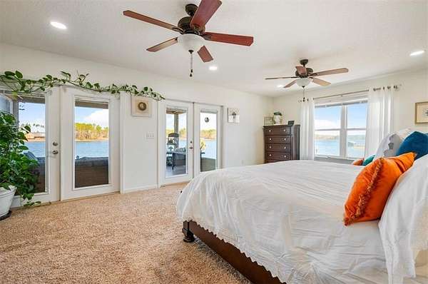 The detached garage adds even more value, with a dedicated workout area and workspace on the lower level, and a 672-square-foot guest suite above. The suite includes a kitchenette, full bath, and beautiful lake views--perfect for guests, hobbies, or multigenerational living.