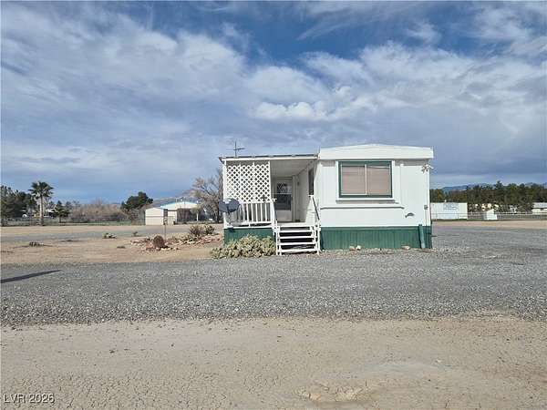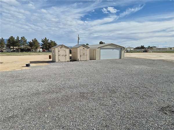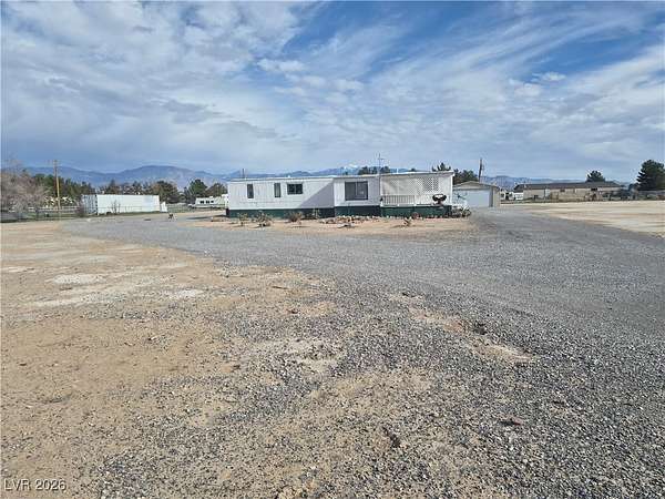 Versatile Pahrump Property with Expansive 6-Car Garage & Mountain Views. This 2-bedroom, 2-bath manufactured home offers comfortable desert living with a porch, deck, and patio--perfect for taking in the peaceful setting and sweeping mountain views. The property is fully gated and features easy-care desert landscaping, two sheds, and all appliances included. Sold with an adjacent graded lot for a combined 2.16 acres, this property is ideal for RVs, ATVs, side-by-sides, and other desert toys, with RV hook-ups already in place. The true highlight is the enormous 6-car tandem garage, providing exceptional space for vehicles, tools, equipment, or recreational storage--an ideal setup for car enthusiasts, hobbyists, or anyone needing serious workspace and storage. With a fenced yard, wide-open views, and endless potential, this property captures the freedom and lifestyle that make Pahrump living so desirable. An exceptional opportunity you won't want to miss.