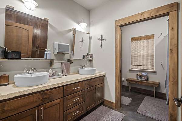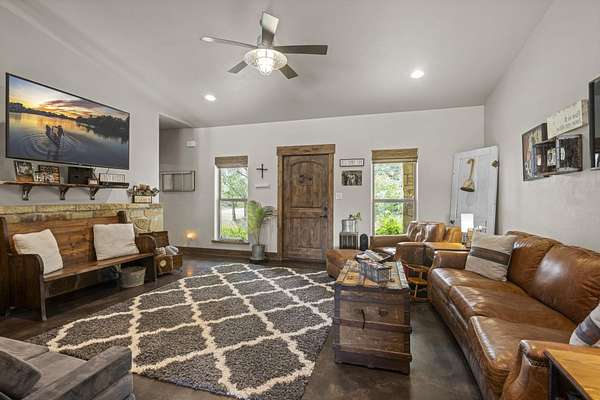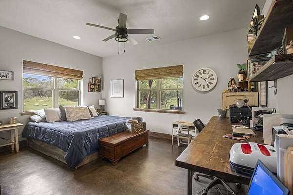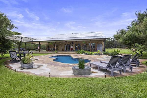 Experience the best of country living with this custom-built sandstone rock ranch home on 4 serene, oak-covered acres. Thoughtfully designed with rustic charm and modern comfort, this 3-bedroom, 2-bath retreat offers an open-concept layout, durable concrete flooring, and the cozy glow of a wood-burning stove--perfect for quiet evenings at home. Life outdoors is equally inviting. Start your mornings on the wide covered porches, take a dip in the sparkling in-ground pool, or simply enjoy the privacy of your fully fenced property with an automatic gated entrance. A new metal roof, sprinkler system, and an exceptional water well delivering 75 gallons per minute ensure peace of mind and easy upkeep. For those who need space to create or work, the 1,200 sq ft shop--with a full bathroom--offers endless possibilities, whether for hobbies, a home business, or extra storage. With its combination of seclusion, natural beauty, and functional amenities, this property is perfect for anyone seeking room to spread out while staying connected to nearby conveniences. Schedule your showing today!