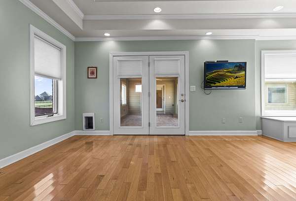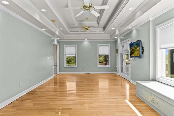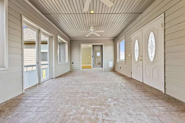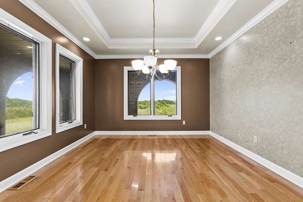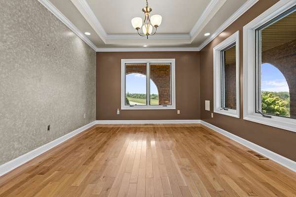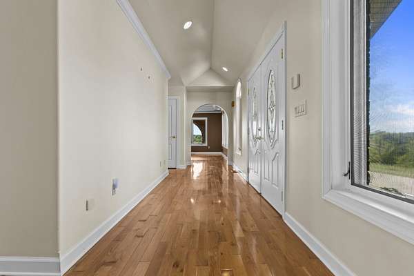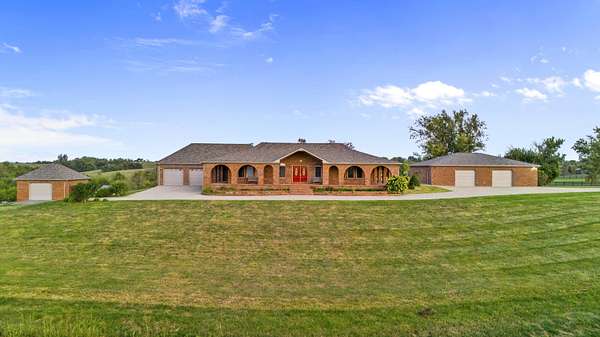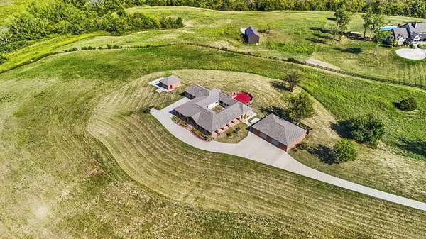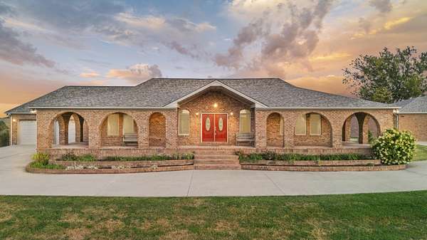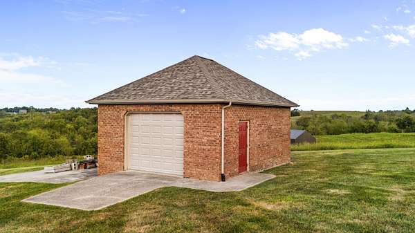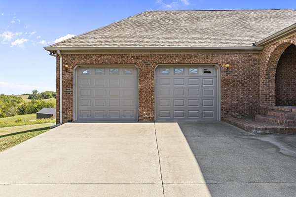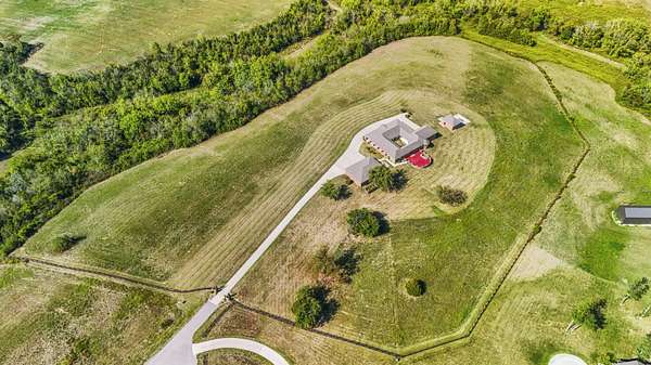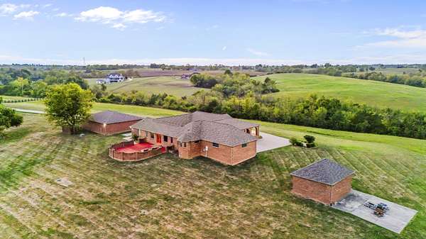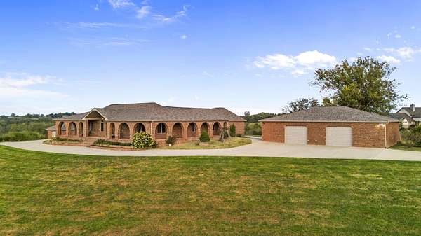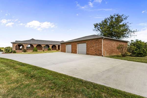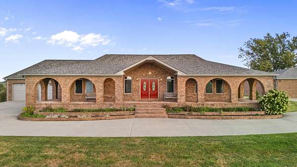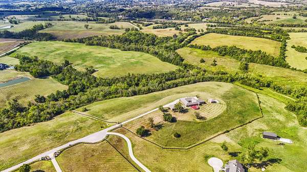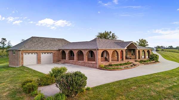 Spacious ranch home offering over 3,800 sq. ft. of living space with 4 bedrooms and 2.5 bathrooms. This gated property combines comfort, functionality, and beautiful views throughout. The layout includes a welcoming family room, a living room with a cozy gas fireplace, and a private courtyard just off the living room-perfect for relaxing or entertaining. An enclosed sitting room connects seamlessly to the rear patio and courtyard, creating a wonderful flow for indoor-outdoor living. Car enthusiasts or those needing extra storage will love the abundance of garage space: an attached 2-car garage, a detached 1-car garage, and an additional detached 2-car garage. The unfinished basement provides even more potential for customization. With its thoughtful design, privacy, and stunning surroundings, this home is truly a rare find. Currently platted property consists of 40.06 acres of raw land fronting on Old Wilderness Trail and 20 acres of land and the house with access from Overlook Trail. Sellers will entertain offers as currently platted, for the entire property or they have a plat that has not yet been approved dividing the property into the house and 12.21 acres on Overlook Trail, 2 acreage tracts of 27.32 and 20.0 acres each with frontage on Old Wilderness Trail. Property reduced to 1,350,000. 27 acres are under contract. The house and 12 acres are $900,000 with an additional 20 acres listed for $450,000. Can be purchased together or separately.