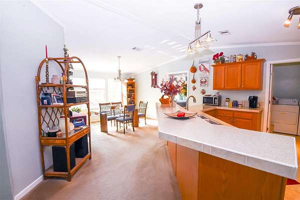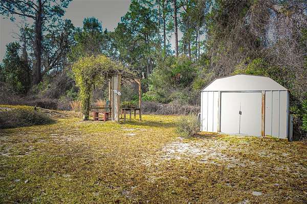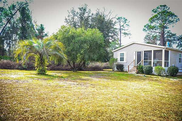 Located in the peaceful Whispering Pines area of Georgetown, this home offers quiet rural living with paved roads, wooded surroundings, and abundant wildlife. The split floorplan features carpeted living areas and bedrooms, a welcoming living room with a real wood-burning fireplace, a large kitchen, a separate dining room, a large primary suite, crown molding, and plenty of storage space with walk in closets in all 3 bedrooms. Enjoy outdoor living from the screened-in front porch or the large side deck, ideal for taking in the peaceful wooded surroundings. Comes with a carport for covered parking and a garden shed for storage. A rare bonus--this property includes a second wooded lot, bringing the total acreage to 2.12 acres. Keep the additional lot natural for extra privacy, build a home or place a manufactured home for a second residence or investment opportunity. Georgetown is a quiet, rural community nestled along the shores of Lake George, known for its natural beauty, abundant wildlife, and relaxed Old Florida charm. Popular with outdoor enthusiasts, the area offers excellent fishing, boating, and access to nearby springs and state forests, while still being within a reasonable drive to larger towns for shopping, dining, and everyday conveniences.