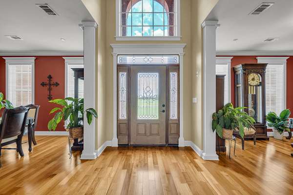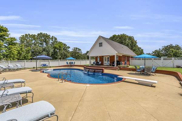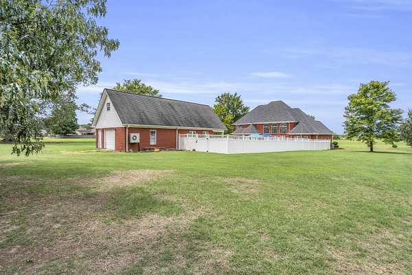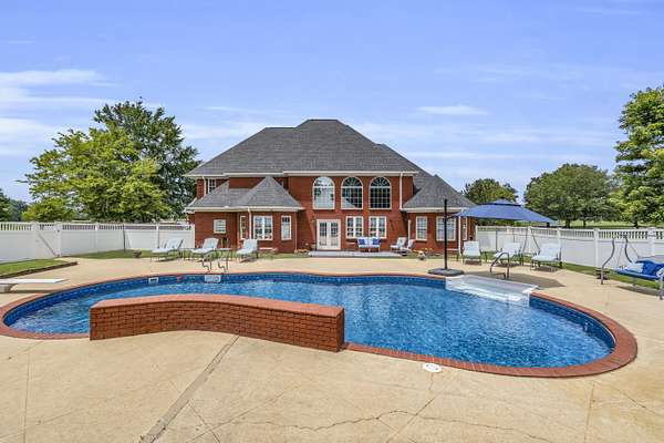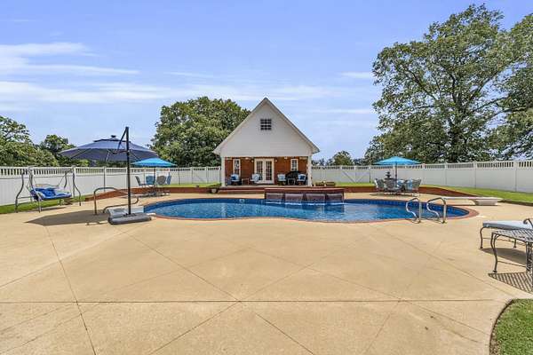 Experience refined living in this custom-built 4,026+/- square-foot residence, perfectly situated on 2.26 acres of serene, landscaped grounds. Offering 4 spacious bedrooms and 3.5 well-appointed bathrooms, this home blends timeless elegance with modern convenience. The heart of the home features an open-concept design, showcasing high-end finishes, abundant natural light, and thoughtful details throughout. Step outside to your private retreat-an inviting in-ground pool with a tranquil waterfall feature and an adjacent pool house, ideal for entertaining or unwinding in style. For the hobbyist or professional, the property also includes an attached shop, providing ample space for projects, storage, or recreational equipment. With its expansive setting, premium amenities, and exceptional craftsmanship, this property offers the perfect combination of luxury, comfort, and functionality. Property includes 800 sq.ft. pool house with attached shop. Pool house includes laundry room & bathroom.