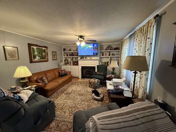 The home features 2 bedrooms, 1 bath, a cozy living room with a gas fireplace, and an attached one-car garage. Outdoors, enjoy a productive garden spot, mature fruit trees, and blackberry bushes, perfect for those who appreciate fresh, homegrown produce and outdoor living.