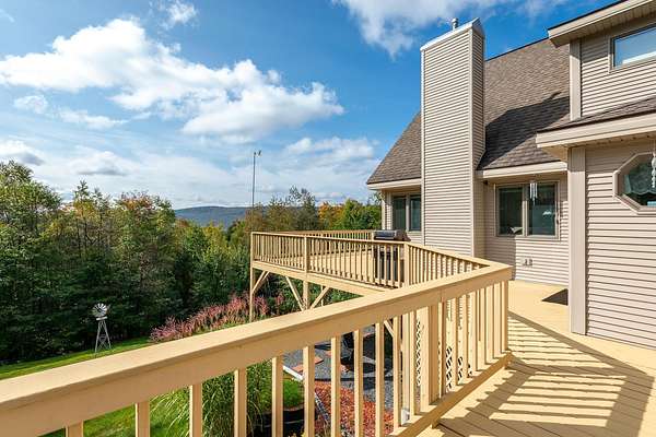 Situated on over five acres of rolling Vermont hillside, this three-bedroom, two-bath home offers effortless access to Okemo Mountain Resort, Stratton Mountain Resort, Bromley Mountain, and Magic Mountain Ski Area, and is being sold turnkey. Designed for those who value both comfort and connection to the outdoors, this property is a true four-season retreat. In winter, enjoy world-class skiing and nearby VAST trail access for snowmobiling. Spring and summer bring hiking, biking, and long days spent on the expansive wraparound deck, while fall delivers classic Vermont foliage views across the surrounding countryside. Every season offers a new way to experience the landscape. Inside, an attached two car garage opens to a convenient mudroom, leading into a light-filled great room and open-concept kitchen an inviting hub for gathering after a day outdoors. Two well-appointed bedrooms and a full bath anchor the main level, while the upper level is dedicated to a private primary suite with a loft overlooking the great room, spacious bath, walk-in closet, and home office. The finished walkout lower level adds a layer of relaxed living, featuring a game room, TV lounge, additional finished room, laundry area, and direct access to the hot tub perfect for unwinding year-round. A detached one-car garage and additional outbuilding complete this exceptional Vermont escape, where four-season living feels both elevated and effortless.