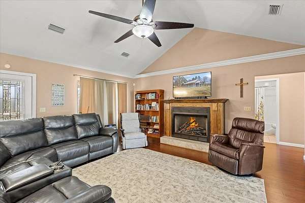 Set on 2.8 acres within a sought after subdivision, this 4 bedroom, 3 bathroom property offers both space and a serene atmosphere. The interior features a spacious kitchen equipped with abundant cabinetry and high quality appliances, ideal for everyday living and entertaining. The primary bedroom is nice size, complete with a jacuzzi tub, dual vanities with a dedicated makeup area, a walk-in shower, and a generous sized walk in closet. With three full bathrooms, the home easily accommodates both family and visitors. The attached two car garage is already fitted with ductwork and finished drywall, offering the flexibility to transform it into additional living space if desired. Opportunities like this, combining acreage and location within this subdivision, are hard to come by. 2 separate parcels are included in this sale: 07884-049 and 07884-038