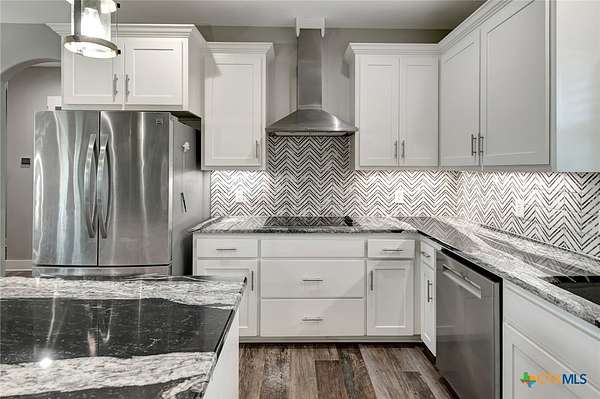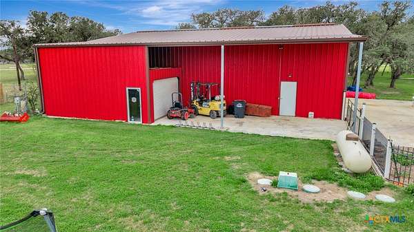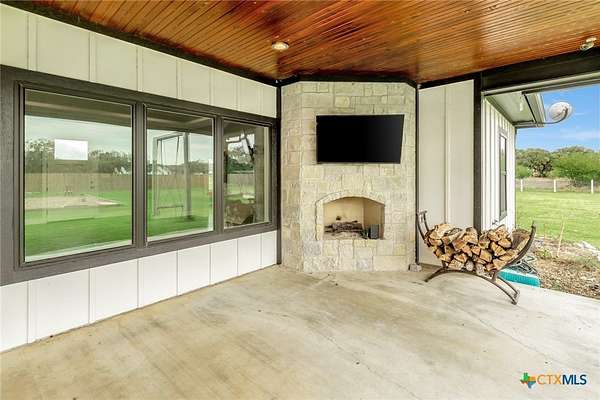 Welcome to your dream home located in Industrial School District! Built in 2020 by Richter Custom Homes, this stunning 3-bedroom, 2-bathroom residence sits on a generous lot with a beautifully fenced yard, offering the perfect blend of modern craftsmanship and timeless character. Inside, discover soaring tall ceilings that flood the living space with natural light, anchored by a striking wood-burning stone fireplace that creates an irresistible gathering spot. The kitchen is a culinary paradise, featuring an electric cooktop, dual ovens, and a gorgeous granite island that flows seamlessly into the living area. Vintage custom doors lead to both the spacious pantry and primary bath, adding one-of-a-kind personality throughout. The spacious primary bedroom features an incredible oversized closet and elegant finishes. Two additional bedrooms and a well-appointed second bathroom complete the interior. Outside, the covered patio with an outdoor fireplace and tall ceilings creates an extraordinary entertainment retreat perfect for year-round enjoyment under the Texas sky. The impressive 40 x 60 barn, with a 15-foot lean-to is fully equipped with a full bathroom, kitchen, and electricity, making it ideal for a workshop, game room, or creative studio. Practical upgrades include a gas furnace, gas water heater, a plug on the meter for a portable generator, and Cat 6 hardwired cabling in the attic for security cameras. This thoughtfully designed property delivers country living with every modern convenience. Schedule your private tour today before someone else calls it home!