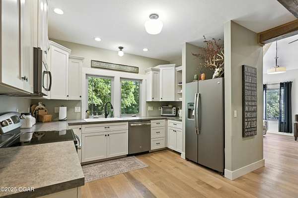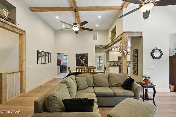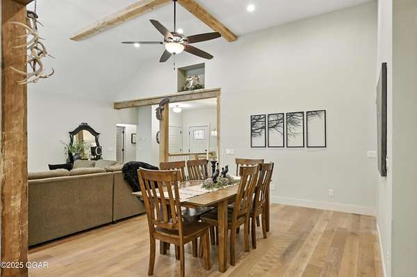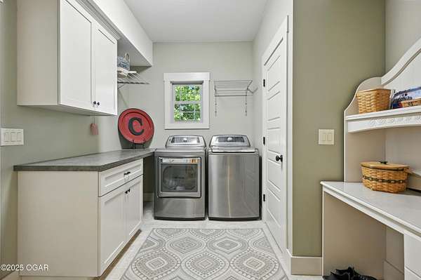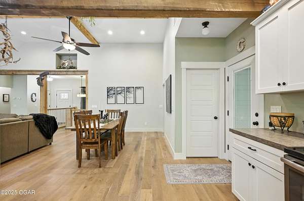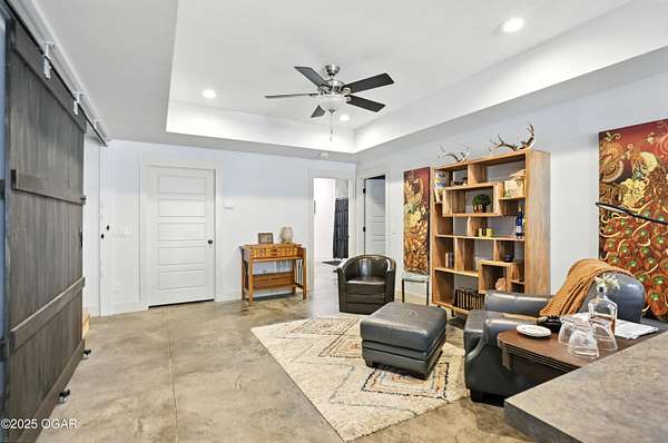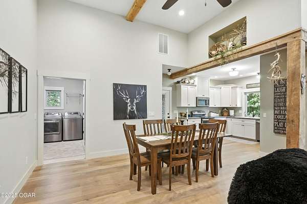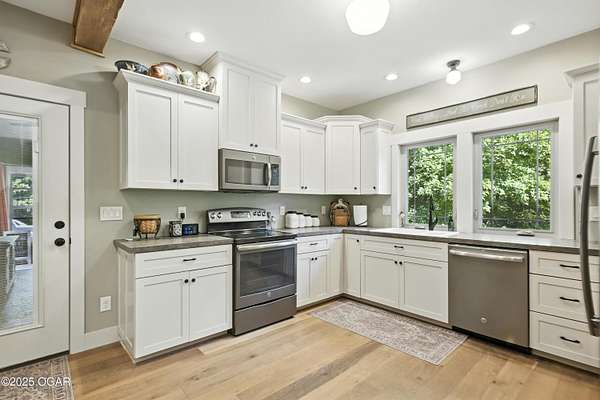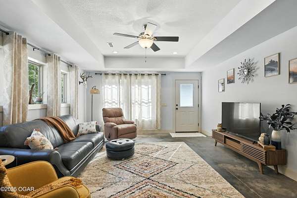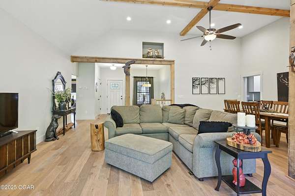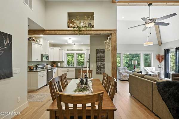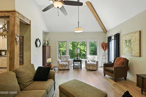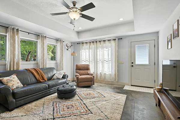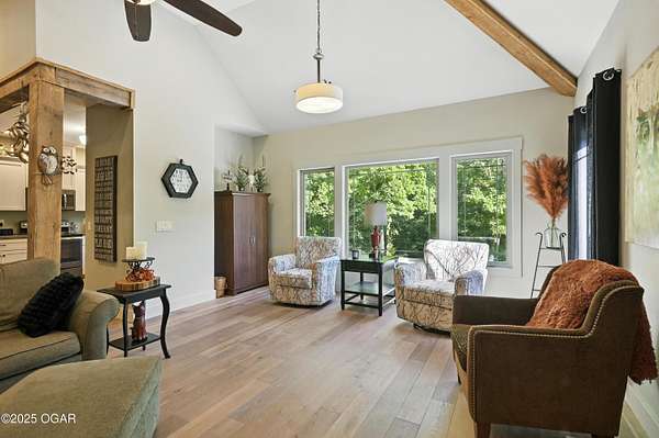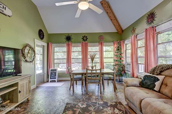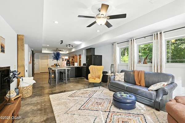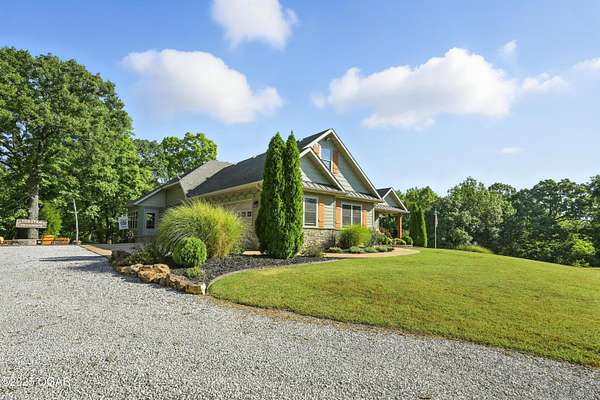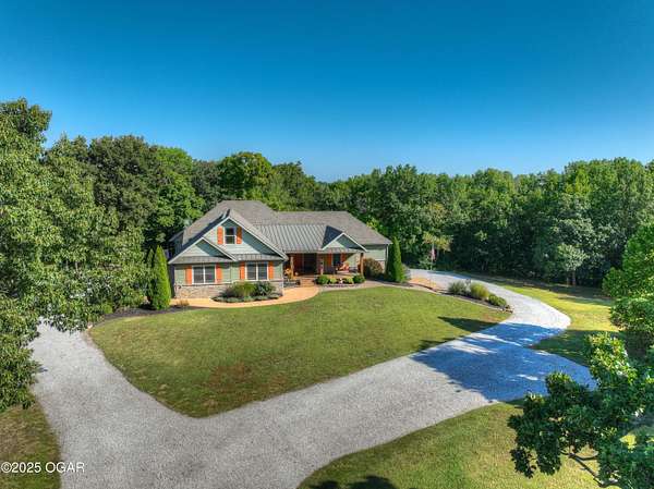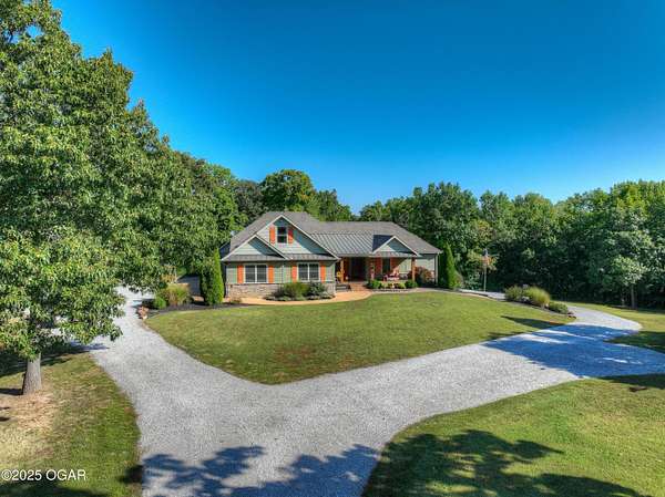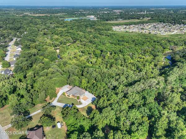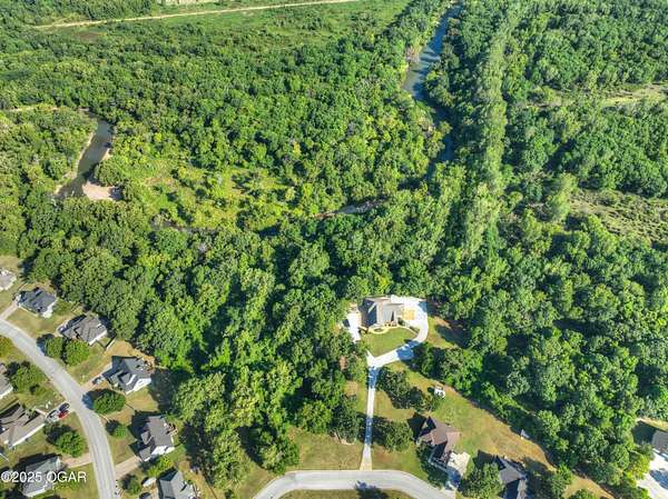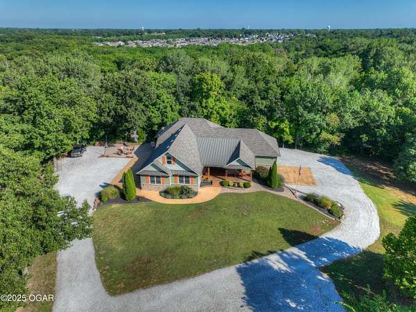 Discover your own private retreat on 32 wooded acres in a serene setting of the highly sought out Briarbrook Sub Division in Carl Junction. This impressive 4,200sqft (approximate) residence features 3 bedrooms and 3 full bathrooms that offers expansive living space and unparalleled natural beauty. Step inside to large, open living area framed by large windows that flood the home with light and present sweeping views of the woods and creek below. One highlight of the home is the four season room - an inviting space that overlooks the gentle creek, the mature trees, and abundance of nature. This beautifully designed modern home was designed for comfort and flexibility with two living areas, 2 kitchens, 3 garage spaces perfect for vehicles, toys, workshop, or storage all while sitting on 32 partially wooded and partially cleared acres to explore, wander or simply relax. Enjoy the trail, mature timber and creek frontage that provide both recreation and peace. Imagine morning coffee in the four-season room with the view of the creek and walk right out your door to gather around the fire pit after a long day. This home is a rare combination of privacy and luxury.