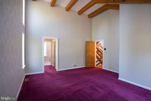 Carpet, Entry Level Bedroom, Exposed Beams, Jetted Tub Bathroom, Primary Bath(s), Tub Shower Bathroom, Walk-In Closet(s), Walk-In Shower Bathroom, Window Treatments, Wood Floors