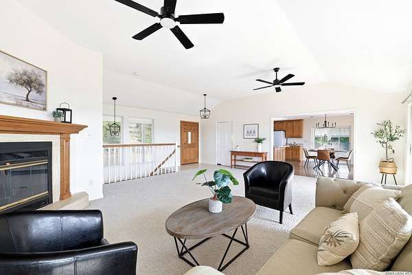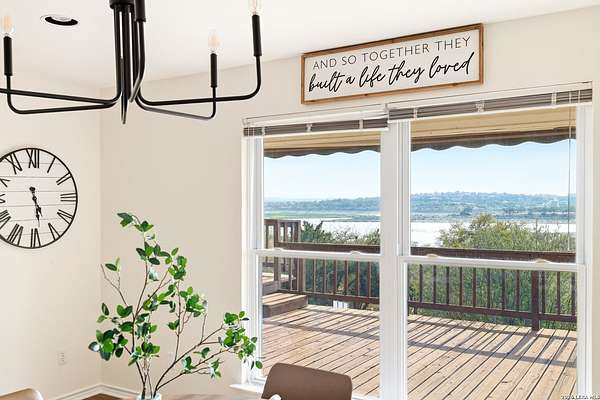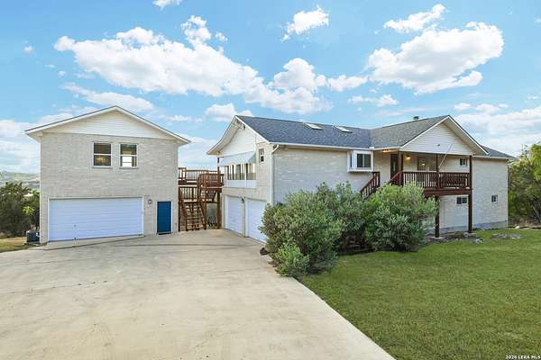 MAIN HOUSE IS 2649SQFT, GUEST HOME IS 720SQFT. Waterfront opportunity on almost 2 acres with STUNNING VIEWS, versatility, and space! This unique property delivers scenic lake views, flexible living options, and no HOA-giving you the freedom to use it as a primary residence, vacation getaway, or short-term rental investment. The main home offers a comfortable, open layout with fresh interior paint, brand new light fixtures, and a well-maintained feel throughout. A separate garage apartment (3 bed, 1 bath) expands the possibilities with additional living space-ideal for guests, multigenerational living, a private workspace, or rental income. Designed for both recreation and function, the property features a large covered patio with a sunshade, a sports court, abundant storage, and frequent wildlife sightings, including deer that add to the peaceful atmosphere. Two oversized double garages provide plenty of room for vehicles, a camper, a boat, lake gear, or storage, with one garage including a full bath-perfect after a day on the water. The property has been meticulously cared for and in great shape! Enjoy the balance of quiet lakeside living while staying within easy reach of nearby conveniences. Whether you're looking for a personal escape or an income-producing property, this is a rare opportunity to own a spacious, flexible lakefront property with room to grow and endless potential.