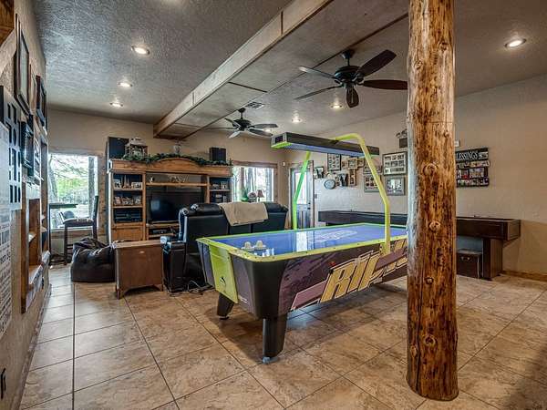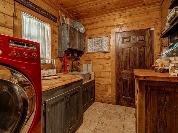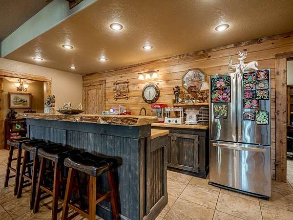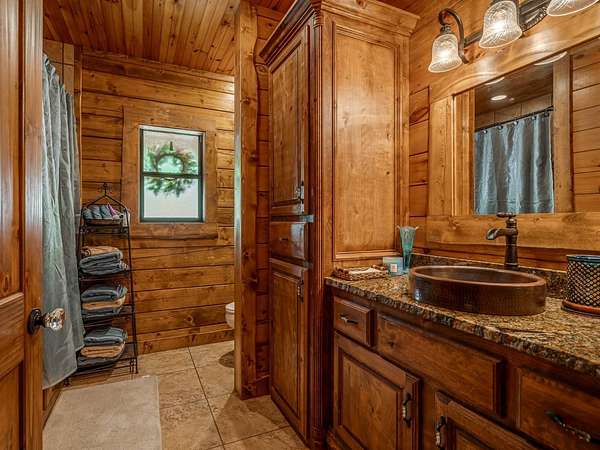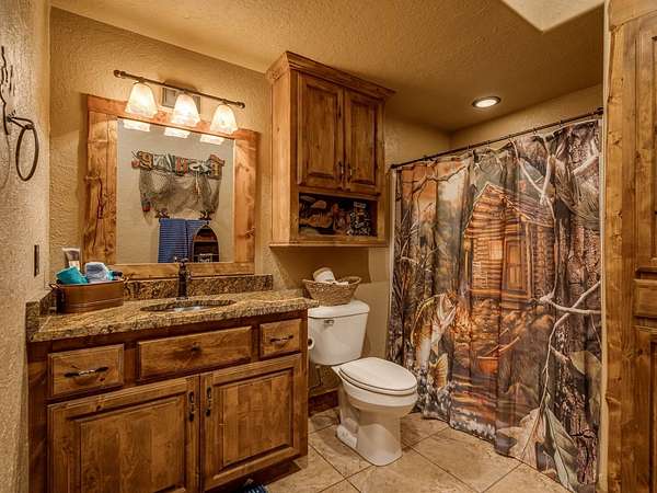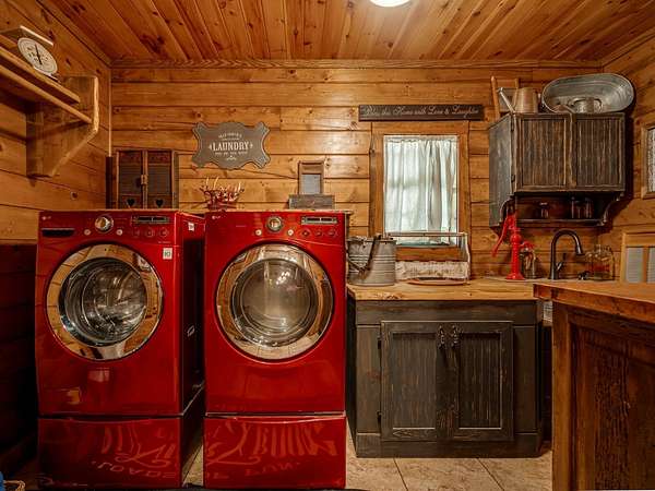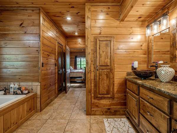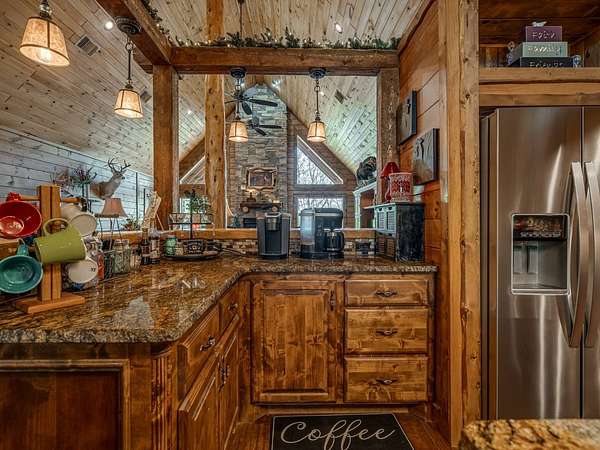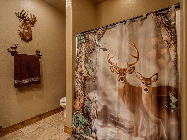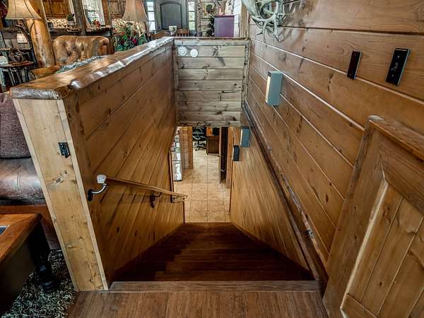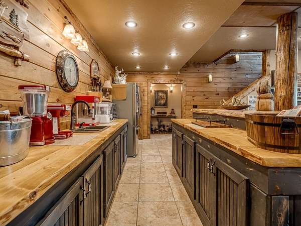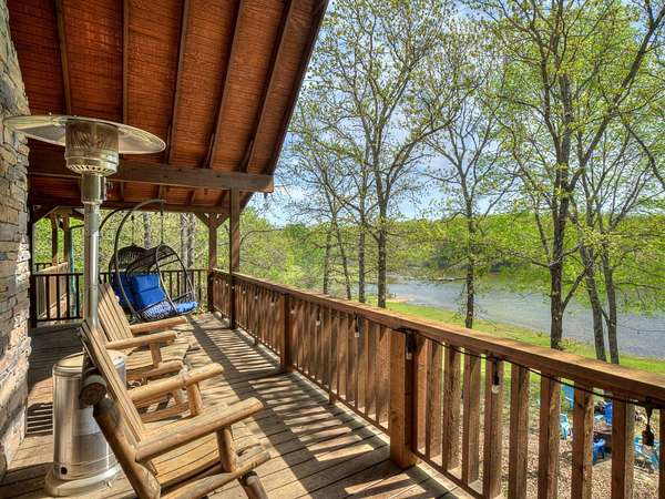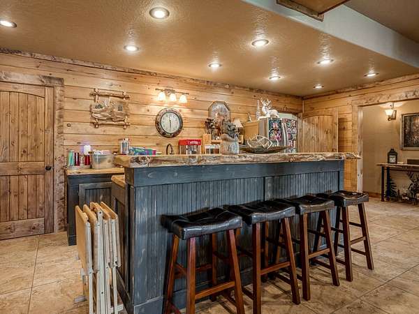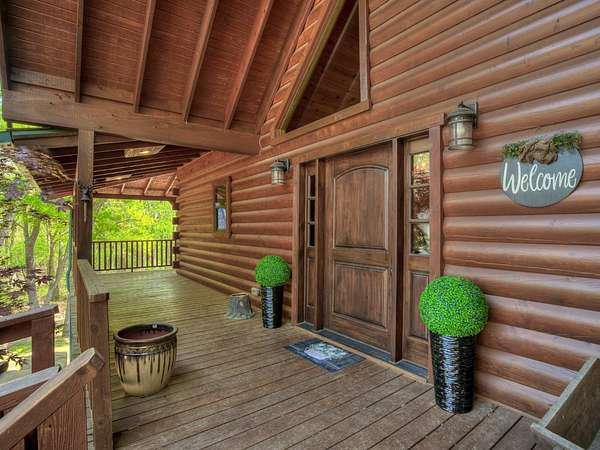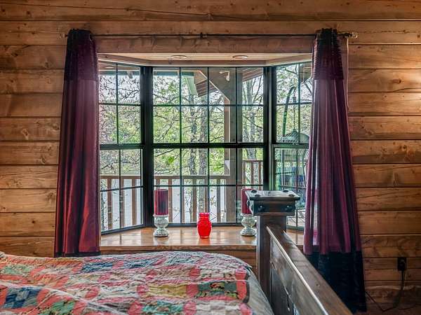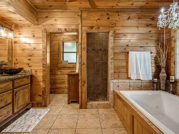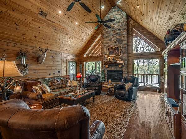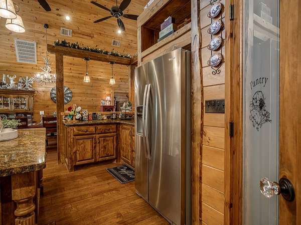 This Satterwhite luxury log home delivers it all...elevated craftmanship, peaceful water pond views, privacy and effortless entertaining create the feeling of a true luxury retreat, where slow mornings and lake life await, just minutes from ARBUCKLE LAKE! This stunning luxury log home, 3890 sf (mol) is nestled on 8+ acres (mol) with water frontage and a private dock, 30X 60 garage/shop located about 3 miles to Arbuckle Lake Point Road boat ramp. Select furnishings may be included with an acceptable offer. Designed to capture breathtaking views inside and out, expansive windows throughout the main level and walk-out basement bring nature's beauty indoors for year-round enjoyment. The main floor features 2 bedrooms, 2 bathrooms, a full kitchen with coffee bar, dining area, and inviting living space. The walk-out basement offers 2 additional bedrooms, 2 bathrooms, a kitchenette with eating area, game room, and secondary living space-ideal for guests or entertaining. Rustic luxury flows throughout, from the chandelier above the primary jacuzzi tub to soaring vaulted ceilings and with careful attention for to design details. Highlights include custom knotty alder cabinetry with roll-out drawers, under-cabinet lighting, glass-front uppers, and chisel-edge granite on counters, island, and vanities. Hardwood floors grace the main level, with ceramic tile in the laundry room, bathrooms, and entire basement. A double-flue fireplace offers propane logs indoors and a wood-burning option on the back patio. A whole-home generator powers both the home and shop. The impressive 30x60 garage includes spray-foam insulation, finished sheetrock, an approximately 1,800 sq ft walk-thru upper level, insulated garage doors (pontoon ready), a 10x20 shop, and dedicated boat storage with 12' ceilings. A rare opportunity to own a thoughtfully designed luxury log home with water views-truly one of a kind.