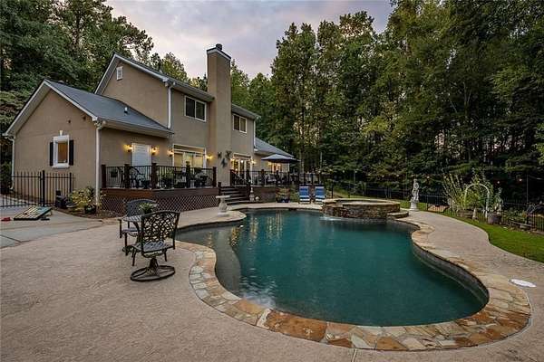 Rare Dual-Residence Estate in Roswell! Discover an extraordinary opportunity to own a private, 2-acre estate tucked away on a quiet cul-de-sac in one of the area's most prestigious communities. This unique property features two fully independent residences. The Main Residence offers 6 bedrooms and 5 baths and the Detached Second Residence has an additional 4 bedrooms and 4.5 baths. This estate was designed for large families, true multi-generational living, guest accommodations, or income-producing investment potential. It offers serene views to a shared backyard sanctuary where birdsong, gardens, and a resort-style pool & spa create everyday tranquility and exquisite gathering spaces. Main Residence - 3,965 sq.ft: The dramatic two-story foyer welcomes you into a home designed for both comfort and entertaining. Featuring a banquet-sized dining room, paneled study, and renovated chef's kitchen with quartz countertops and stainless-steel appliances. The kitchen opens to a bright eat-in breakfast area, an air-conditioned sunroom, and a soaring great room with fireplace, all leading to a brand-new expansive deck perfect for outdoor gatherings. This elegant home includes dual primary suites, one on the main level and one upstairs each with newly renovated bathrooms and generous walk-in closets. There's an additional bedroom on the main level and two more bedrooms upstairs, ensuring flexible space for large families or guests. The finished terrace level opens to the pool area and is an entertainer's dream, with a media/game room, full wet bar, an additional bedroom/office and a very large 400 sq.ft. air-conditioned workshop or hobby room with exterior access (not included in total sq.ft.). Detached Residence - 2,690 sq.ft.: The beautifully designed second residence provides complete privacy and independence from the main residence and offers a traditional layout with vaulted ceilings and a fully renovated kitchen with quartz countertops and a 7 ft. island. The dining area flows into the open-concept living area with a fireplace which leads to its own expansive deck overlooking the nature-rich grounds. The main floor boasts two primary suites (including one with its own sitting area and exceptional closet space), each with private baths. Upstairs on the 2nd floor, you will find two additional bedrooms and one full bath, providing comfortable separation of space. Resort-Style Amenities: Both residences are oriented to a serene, nature-rich shared backyard with a fenced custom-finished pool and waterfall spa that is accompanied by a dedicated pool bathroom. There is over 2,000 sq ft of Trex decking, on 2 separate decks each having beautiful views of the grounds. There is a three-car air-conditioned garage, plenty of parking and lots of green space with a storage shed, seating area, and room to grow. Additional upgrades include professional landscaping with smart sprinklers, smart pool controls, and smart lighting. The backyard, framed by mature trees and dappled light, is ideal for entertaining, hosting large gatherings, or just enjoying morning coffee beneath the shade of the covered patio watching the butterflies and songbirds as deer wander the edge of the lawn. Afternoons drift by beside the pool. Evenings settle around soft landscape lighting and the quiet hum of nature. Location: Located just minutes from Historic Roswell, Trendy Alpharetta, and Atlanta, this property lies within a top-rated public school district and near a sought-after private school. While offering easy access to a large City of Roswell Park with a dedicated dog park, shopping, dining, and entertainment, this estate feels secluded yet offers the perfect blend of privacy, luxury, and convenience. If you are looking to host and live close to your extended family, entertain in style, or enjoy the flexibility of rental income while living in luxury, this versatile estate is ready to exceed every expectation as your everyday retreat that feels a world away.