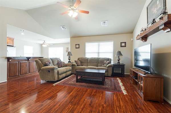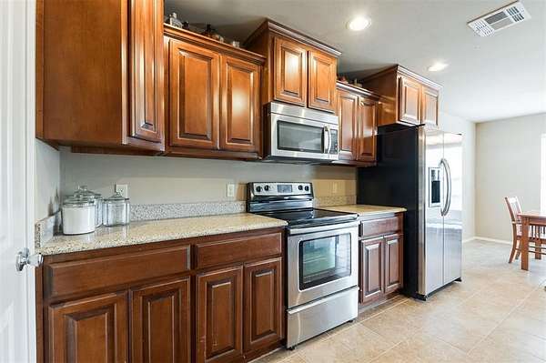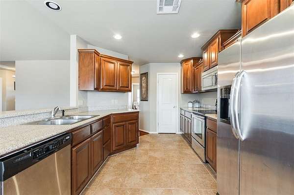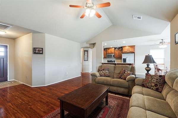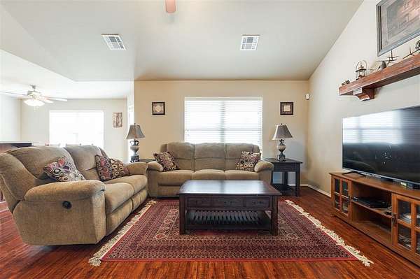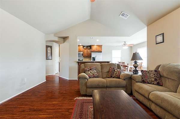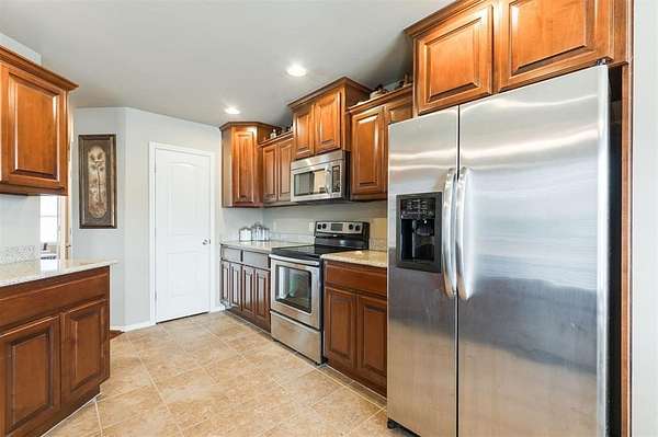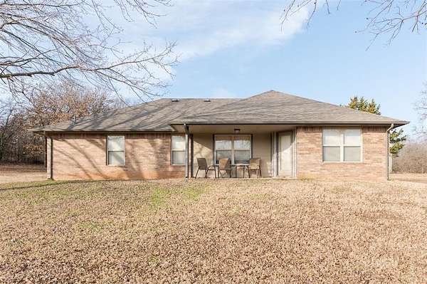 This traditional-style home is situated on a spacious 2.5-acre lot within the Rolling Meadows addition in Luther, OK. Enjoy a peaceful, country-like setting just off historic Route 66, offering easy access for your daily commute and errands. The interior is designed for efficient, everyday living. The central space features an open floor plan connecting the kitchen, living, and casual dining. The kitchen is equipped with essential stainless steel appliances and features granite countertops, offering durable surfaces for daily use. The primary bedroom is a private retreat, featuring an en suite bathroom and a spacious walk-in closet. The secondary bedrooms also offer ample storage with their generously sized closets. The highly functional utility room includes hookups for your washer and dryer, in addition to significant storage capacity. Its direct access to the garage facilitates the effortless unloading and movement of bulky items. Furthermore, the robust shelving options ensure efficient organization and a clutter-free environment. The partially paved driveway leads directly to the two-car attached garage, providing easy, covered parking and immediate entry to the home. Out back, a comfortable covered patio provides a serene spot to overlook the expansive, open yard, which is beautifully framed by large pecan trees. Observe the abundant local wildlife, which frequently includes deer and various species of birds. Living here means benefiting from the quiet, slower pace of rural life; you are only a five-minute drive to downtown Luther, and the nearby Turner Turnpike offers an efficient, although short, route when you need to access larger communities. Request a showing today!