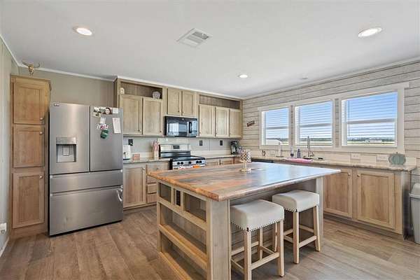 Experience peaceful country living with a touch of modern comfort in this stunning 2021 home, perfectly set on a spacious 1.86-acre lot in Kinder. Move-in ready and thoughtfully designed, this beautiful 3-bedroom, 2-bath retreat offers the perfect blend of space, style, and functionality. Step inside to find a bright, open-concept layout with plush carpet and warm wood-look flooring that flows seamlessly throughout. The spacious living room features a custom-built entertainment center--perfect for relaxing or gathering with loved ones. The kitchen is a showstopper with its expansive countertops, large center island, sleek modern appliances, farmhouse sink, and abundant cabinetry. A built-in hutch area makes for the perfect coffee bar or wet bar setup, and the dining area provides plenty of room for family meals and entertaining. The primary suite is a true escape with a generous walk-in closet and a spa-inspired en-suite bathroom complete with dual vanities, a deep soaking tub, and an oversized walk-in shower. The two additional bedrooms offer plenty of space and storage for family or guests. Outside, enjoy the oversized concrete patio that stretches across the back of the home--ideal for outdoor dining or simply soaking in the peaceful surroundings. The full one-acre lot gives you room to garden, play, or create your own backyard oasis, and the home sits on a solid slab foundation for added stability. Located in Flood Zone X, the property would not require flood insurance! With its modern amenities, open design, and serene rural setting, this Kinder property is a rare find--offering comfort, convenience, and country charm all in one. Don't miss your chance to make it yours! All measurements are M/L.