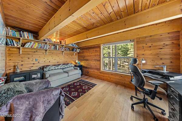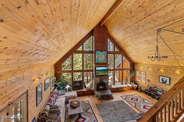 Seeking that off grid and unplugged lifestyle.... or are you desperately trying to find that property where you can disappear from the craziness of the world in your own safe haven? Let me introduce you to The Sierra Sanctuary, a truly rare offering in the heart of the Sierra Nevada Mountains. Encompassing 40 beautiful acres just below Mt. Rose Ski Area, this remarkable estate captures the essence of refined mountain living, where complete privacy meets quick access to Lake Tahoe and Reno. Surrounded on all sides by protected United States Forest Service land, the property offers a level of seclusion that is increasingly rare, creating a true sanctuary in nature while remaining just minutes from world-class skiing, hiking, and everyday conveniences. The location strikes a unique balance-only moments from the slopes of Mt. Rose, a short drive to Incline Village and the shores of Lake Tahoe, and approximately twenty-two minutes to Reno-Tahoe International Airport. At the heart of the property, a meticulously designed and well maintained three-bedroom, three-bath A-frame mountain lodge is thoughtfully positioned to take full advantage of its surroundings. Soaring vaulted ceilings and expansive windows frame breathtaking forest views, filling the interior with natural light and seamlessly connecting indoor and outdoor living. Designed with both comfort and sustainability in mind, the home is powered by newly upgraded solar and hydro systems, offering an eco-conscious lifestyle without sacrificing modern amenities. An oversized four-car garage provides exceptional versatility, whether used for vehicle storage, a workshop, or as a basecamp for all-season recreation. Beyond the main residence, the land unfolds with multiple partially graded building sites, each set within its own private forested enclave, presenting an extraordinary opportunity to expand the estate with guest homes, additional structures, or a legacy compound. Currently configured as four separate parcels, including two six-acre parcels and one sixteen-acre parcel, The Sierra Sanctuary offers rare flexibility for future development or long-term investment, while still maintaining the integrity and privacy of a singular mountain estate. With its unmatched setting, scale, and proximity to the best of the Sierra, this is a property that transcends the ordinary-equally suited as a private retreat, generational estate, or strategic land holding. A true sanctuary in every sense, The Sierra Sanctuary offers a rare chance to own one of the most private and compelling properties in the region.