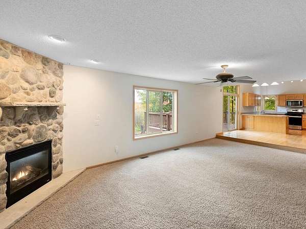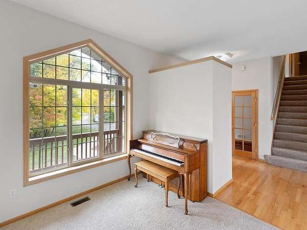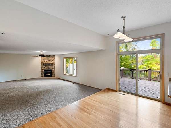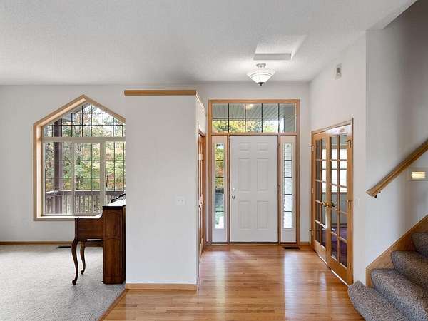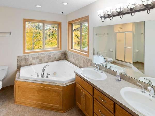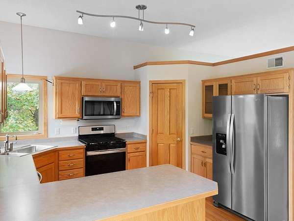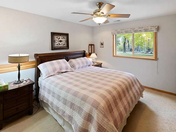Welcome to 6 wooded acres in East Bethel--private, peaceful, and minutes from Highway 65. This 3,260-square-foot modified two-story delivers the space and functionality on a beautiful acreage setting. The main level features open kitchen-dining-living flow with gas fireplace, walk-in pantry, and deck access overlooking wetlands and mature trees. A main-floor office with French doors and front flex room provide work-from-home options. Main-floor laundry/mud room area is a must have. Upstairs, the primary suite has a large walk-in closet and updated primary bath with dual vanities, soaking tub, and dual-head shower and tile floors. Two more bedrooms a full bath and plenty of storage complete the second floor. The finished walkout lower level functions like a separate living suite--perfect for multi-generational living. With its own kitchen, bedroom, 3/4 bath, large rec room, and bonus space, aging parents or adult children gain independence while staying connected. The second laundry adds practical convenience and dont forget the stair access directly from the garage. Outside is where this property shines: 6+ acres of woods and wetlands, elevated deck, concrete patio, and genuine privacy. The heated 6-car garage handles vehicles, toys and storage, while a 22' x 32' workshop and two sheds provide serious workspace for hobbies, equipment, or projects.
