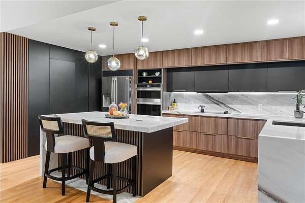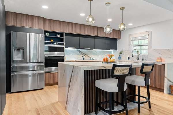 The fully remodeled kitchen is a chef's dream, complete with modern cabinetry, quartz countertops, stainless steel appliances, and a large island perfect for family gatherings. The primary suite offers a true retreat experience, with French doors and 2 spacious walk-in closet. Throughout the home, you'll find tasteful updates, sleek finishes, and a new roof, ensuring lasting quality and peace of mind.