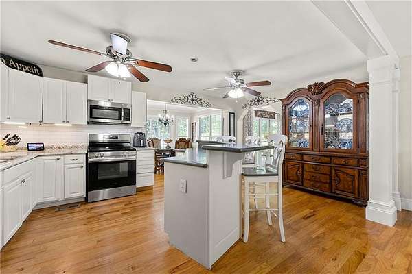 LOCATION, LOCATION, LOCATION! WELCOME HOME to this charming 4 Bedroom, 2 Bathroom Ranch nestled on 1.5 acres just minutes from Lake Oconee and near the highly sought out Lake Oconee Academy! Surrounded by nature and bordered entirely by 1500 acres of US forestland offering hunting and fishing opportunities in your backyard. This beautiful home offers the perfect serene oasis with plenty of space to unwind, including a covered front porch and large rear deck! Step inside to a bright living room with an open concept to the kitchen, featuring hardwood flooring, stainless steel appliances, and an eat-in area. Just beyond the kitchen, the cozy sunroom offers the perfect spot for dining or relaxing, while the versatile bonus room can be used as an office, playroom, family room, or anything that is perfectly tailored to your family's lifestyle!!! Down the hall, you will find two additional bedrooms, a spacious laundry closet, and the inviting Primary suite. The Primary Bathroom boasts dual sinks with sleek grey, white, and silver finishes, along with a separate tub and shower!! Stepping outside, you can enjoy the outdoors from the expansive back deck, perfect for entertaining or soaking in the peaceful views. Only minutes from Lake Oconee, you'll have access to boating, fishing, swimming, and water sports, all surrounded by scenic parks and lush forests. The property is conveniently located 4 miles from I-20. Don't miss your chance to call this paradise home YOURS!! Schedule your private tour today!