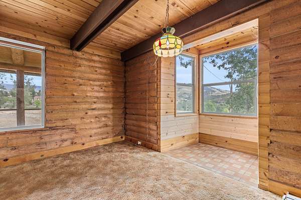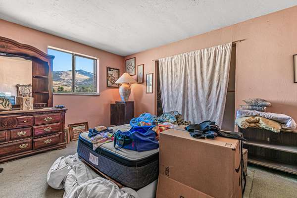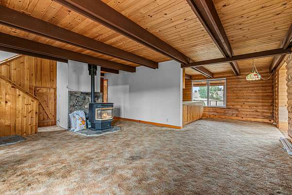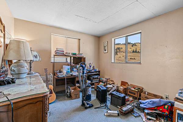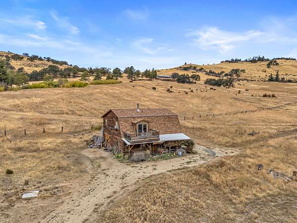 Rare family homestead served by 400+ GPM well on EFU-zoned acreage in the foothills of Grizzly Peak near Pompadour Bluff, just six miles from downtown Ashland! Main level of primary residence with charming covered front porch, two bedrooms with closets, full bathroom with tub shower, living room with pellet stove, dining area with bay window, kitchen with stainless double sink, dishwasher, refrigerator, electric range oven with hood, walk-in pantry, and laundry room. Upper level with three additional bedrooms and full bathroom with tub shower. Double-paned windows with vinyl frames throughout. Accessory structure with huge 1,080 SqFt workshop, 220V electrical, full bathroom with washer, dryer, and tub shower, and an additional 864 SqFt of finished area with kitchen, living room with wood stove and sliding glass door to view balcony, and three bedrooms with closets. Mature shade trees, panoramic views, and gently sloping pasture with Southern exposure. Inquire for details!