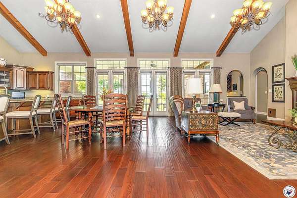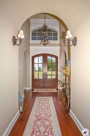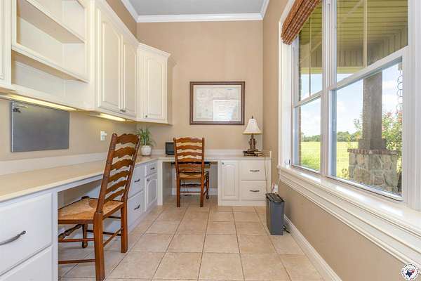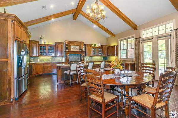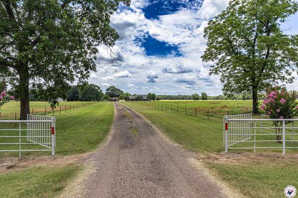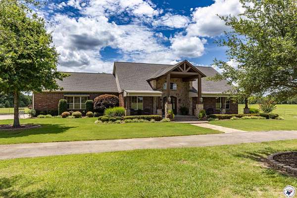 WHAT A GEM, here at 2011 Hwy 8 N in New Boston, where architectural marvel meets luxury. Prepare to be awestruck as you approach this residence boasting a covered grand wood column entryway and inviting front porch that beckons you inside. Step through the arched entrance into an exquisitely crafted 3,240 sq ft of living space adorned with a custom wood beam ceiling, setting the tone for elegance and sophistication. The open floor plan seamlessly integrates the living area with a wonderful kitchen designed to inspire. Revel in the expansive granite bar, perfect for entertaining, while high-end stainless-steel appliances and abundant cabinetry elevate your cooking experience. Other interior highlights include a wet bar, gas log fireplace, 12-foot ceilings, oversized laundry, wood flooring, an opulent master suite featuring a colossal bedroom & closet. Indulge in the spa-like master bath complete with dual vanities, separate garden tub for unwinding, & a ceramic-tiled walk-in shower. Two spare bedrooms each boast their own full baths for comfort, also provided is a functional office space ideal for remote work. This captivating exterior spread across 8 acres along the coveted Hwy 8 North of New Boston, welcomes you with a picturesque piped gate entry leading to a circular drive that sets the tone for what lies beyond. A 30x32 heated & cooled shop, perfect for hobbies, or true mancave. Offering warmth & charm against an idyllic backdrop, this enchanting retreat promises tranquility at every turn, so seize it now before someone else claims this slice of paradise.