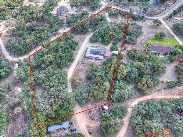 Set on 3.55 oak-covered acres in the Country Estates neighborhood, this property offers a quiet setting just minutes from downtown San Marcos and everyday amenities. Built in 2003, the two-bedroom, one-and-a-half-bath home makes thoughtful use of its footprint and is surrounded by 1,300 square feet of wraparound porches on three sides. The property is shaded by oak trees and fenced on three sides, giving both privacy and room to roam. Wildlife is part of the daily scenery, and the absence of city lights makes evenings ideal for stargazing. As a county property, it carries a favorable 1.52% tax rate and no HOA restrictions. Country Estates also includes a neighborhood pool and tennis courts for residents to enjoy, but the real draw is the ability to enjoy a comfortable home in a natural setting while staying only minutes from town.