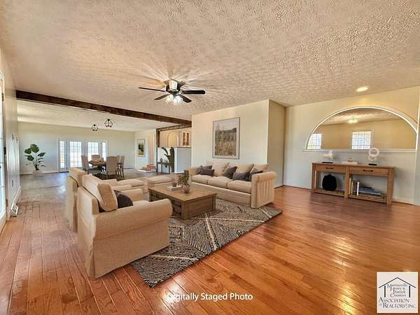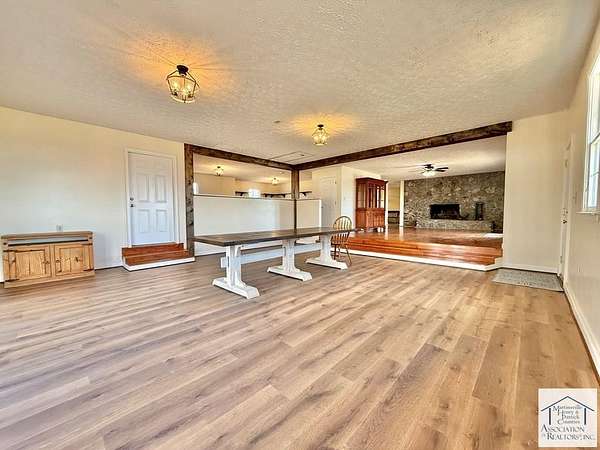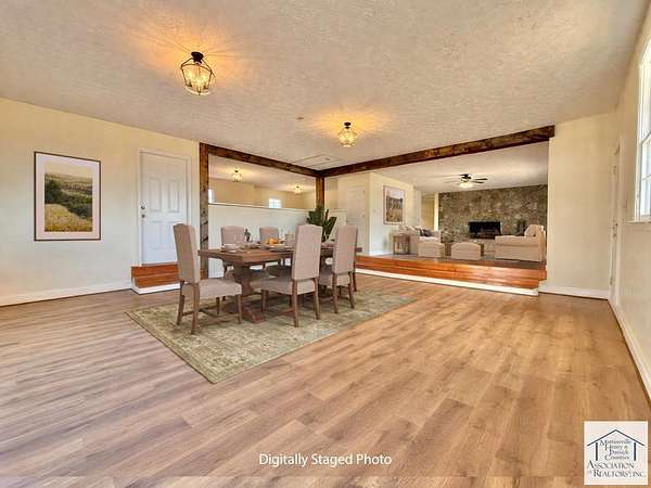 SPECTACULAR VIEWS of the Blue Ridge Mountains from this newly renovated (2025) home including opening up space between the family room, great room and kitchen that has made it bright and has improved the flow of the floor plan. The crawl space has been completely encapsulated to make it free of allergens. The inground pool has been converted to a salt-water system for easier maintenance (all pool equipment incl. the auto-vacuum stays). New board fencing along the front of the property as well as a new pet enclosure on the side. Inside has been redone with new flooring throughout, new light fixtures, newly renovated kitchen with upgraded appliances, and fresh paint. All the bathrooms had already been redone during the last remodel in 2014. All the rooms facing the back of the house have French doors that open up to the back patio, pool area and gorgeous mountain views. The property also includes a detached oversized garage with loft/game room and storage shed. 2 new 50 amp outlets outside. The fireplaces inside are hooked up for gas logs. This property is available with 240 additional acres all fenced and cross fenced, large barn, 9 auto-waterers, 2 pole sheds and a goat pen listed separately. (See MLS # 145747)