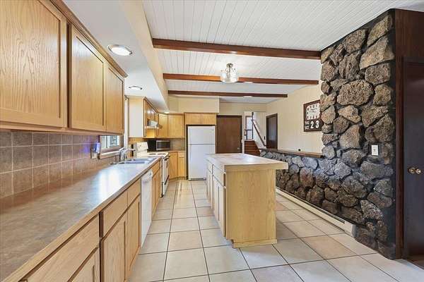 - Cathedral Ceiling(s), Kitchen Island, Natural Woodwork, Pantry, Windows Vinyl