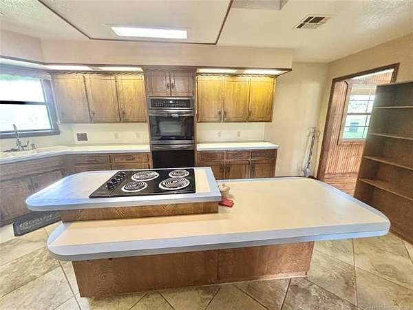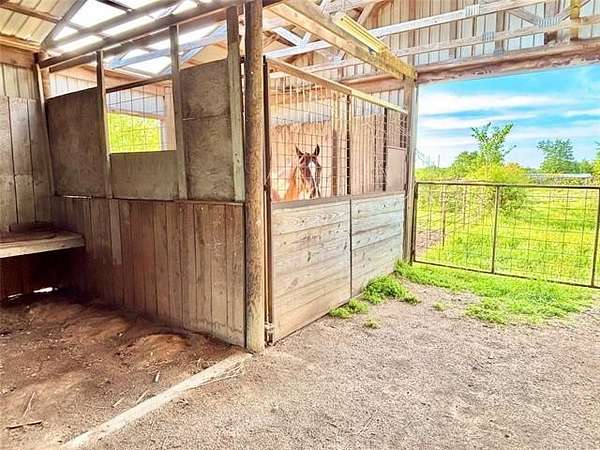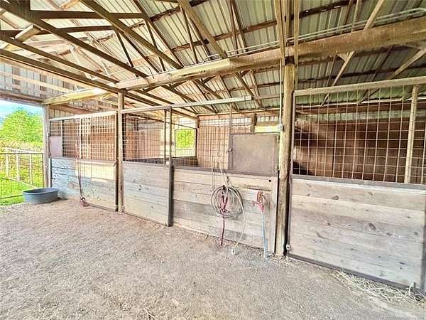 Escape to the country with this versatile 10-acre property located in the desirable Crossroads area of Stigler, Oklahoma. Formerly set up as a horse property, this well-equipped tract offers everything you need to step right into ranch-style living. The spacious home features 3 bedrooms and 3 bathrooms, offering plenty of room to spread out. With its durable metal roof, attractive rock veneer exterior, and attached two-car garage, the home combines function with curb appeal. Enjoy quiet mornings and relaxing evenings on the covered front porch or unwind on the covered back patio overlooking the property. Equestrian enthusiasts will appreciate the impressive 40x60 horse barn, complete with approximately 6 stalls with individual turnouts, a tack room, and dedicated hay/feed storage. Additional improvements include a loafing shed, multiple fenced pastures for rotational grazing or turnout, and a round pen-making this property well-suited for training, boarding, or personal use. Whether you're looking to run horses, start a small operation, or simply enjoy wide-open space with room to grow, this property offers endless potential in a peaceful country setting.
