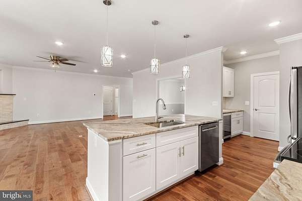 NEW CONSTRUCTION. THIS MAIN LEVEL LIVING CUSTOM HOME ON 2 BEAUTIFUL ACRES WITH NO HOA IS COMPLETE AND READY FOR IT'S PROUD NEW OWNERS! It is truly is the best value for a brand new home with over 3,000 square feet of finished living space with 4 main level bedrooms & 3 full bathrooms! SO MANY UPGRADES! WIDE PLANK ENGINEERED HARDWOOD FLOORS throughout the entire main level and in all bedrooms. Mudroom/laundry room, and ALL 3 bathrooms have durable and elegant luxury vinyl tile flooring. All of the bathrooms have ceramic tile shower/tub walls. The entire house has upgraded white shaker wood cabinetry in kitchen, laundry room & baths with upgraded neutral granite counter tops. All of the closets and pantries have real wood shelving and wood rods for hanging clothing- no cheap wire kits. The main level has crown molding throughout, and additional chair rail moldings and tray ceiling in the dining room. The house has an upgraded lighting package with pendant lights at the kitchen island, under mount cabinet lighting, and chandeliers in breakfast nook and dining room. In the private owner's wing of the house you will find a spacious bedroom that exits to the rear covered porch, adorned with tray ceiling, crown molding and a ceiling fan/light. In the primary bath you will love the two enormous walk in closets, a luxurious bathroom with soaking tub, separate stand alone shower, and two sink vanities with additional storage cabinets. This fabulous floorplan has 9 ft ceilings on the main level, the main living area in the center of the home, and the 3 secondary bedrooms have their own wing on the opposite side of the owner's suite, providing privacy. The main living area is open concept with high ceilings, a large family room with cozy gas fireplace enhanced with quartz stacked stone and granite hearth. An open kitchen with large island and plenty of cabinetry, breakfast nook, coffee bar and pantry. There is a separate dining room or office space and separate entry foyer. The gourmet kitchen, the heart of the home has 42" white shaker cabinetry with gorgeous neutral leather finished granite counter tops, white subway tile backsplash, GE stainless steel appliance package with stove/oven, built-in microwave, fridge, and dish washer-ready for the chef to entertain! The kitchen is equipped with a butler pantry & coffee bar area with separate beverage fridge. On the main level near the owner's suite there is a large laundry room with washer and dryer hook ups, a generous sized utility sink cabinet with granite counter top and stainless steel sink and an additional pantry or cleaning closet. Above the garage is a huge finished bonus room /flex space with warm carpet and it's own separate mini split HVAC system. The back of the house has a large covered back porch and the property is private surrounded by evergreen trees. The basement has a rough in for a bathroom, and walk up stairs to exit on the side of the home. At the current list price the basement will be left as unfinished storage space, however the builder can finish the basement for an additional cost that would depend on the square footage and finishes the buyer chooses. The location is a quiet private setting off of Shenandoah Path in Catlett, VA, all while still being close to several towns; Warrenton, Nokesville, Bristow, Manassas, and Culpeper are all within 15-30 mins of the property. The floor plan is functional as well as warm, elegant & inviting. Be prepared to be wowed by this beautiful home with a large 3 car garage for the car enthusiast. The garage has 12 ft ceilings and tons of space. Two of the garage doors have upgraded lift master wall mounted door openers with auto lock. The property has NO HOA and is ready for you to move in! Contact us today to get a private showing.