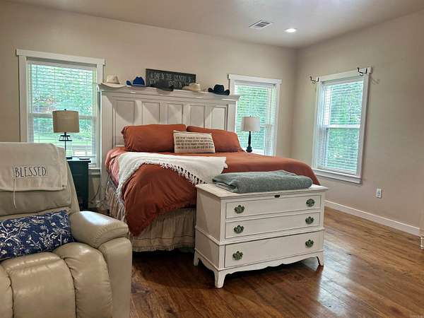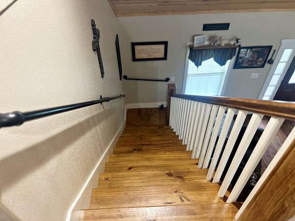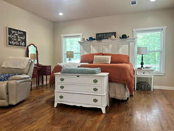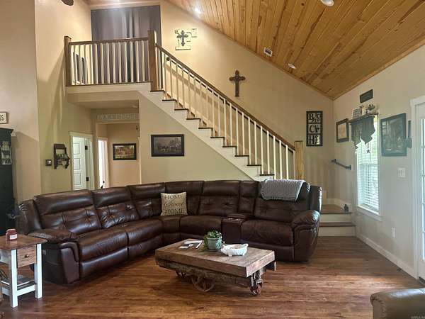 This is a beautiful home with 3 bedrooms, 2 bath, an upstairs bonus room sits on 2.35 acres minutes from Lake DeGray and all its amenities. The country style floors run throughout the house and are a great accent to the high ceilings. The living space is an open floor plan with master suite on opposite side of the other two bedrooms. The front porch, with swings on each end, spans the length of the house overlooking a manicured lawn, while the back porch overlooks the large pool. This is a quality craftsman-built home. Solar panels keep the utilities very inexpensive, and they will convey with the property. This is a one-of-a-kind home and is ready for its new owners. An additional 2.65 acres available to purchase. Schedule an appoint today. See Agent remarks.