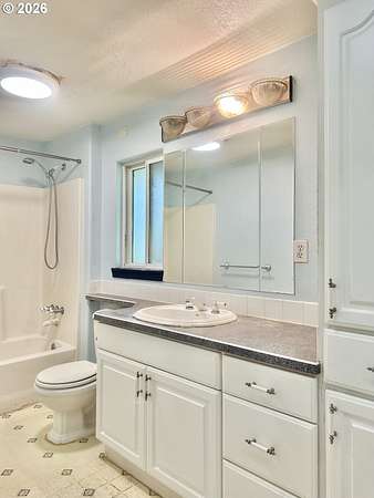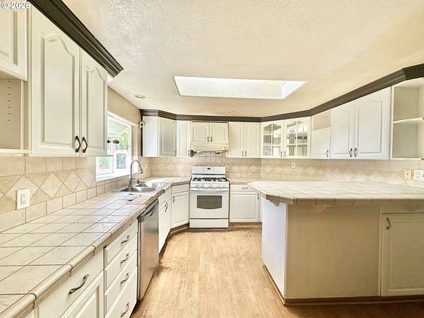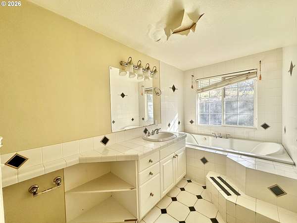 - Ceiling Fan, Laminate Flooring, Laundry, Skylight, Soaking Tub, Tile Floor, Washer Dryer