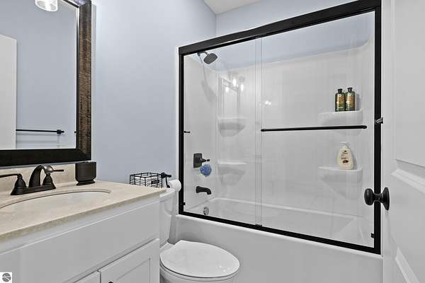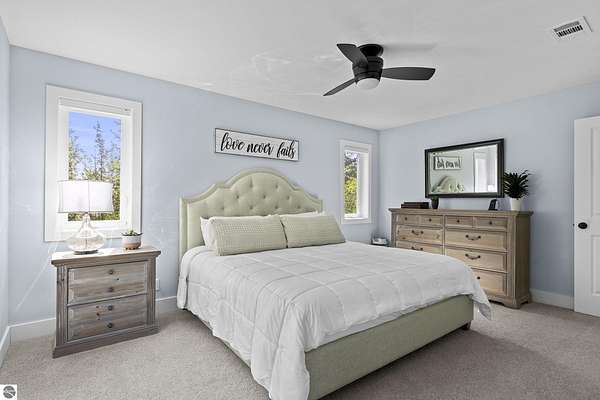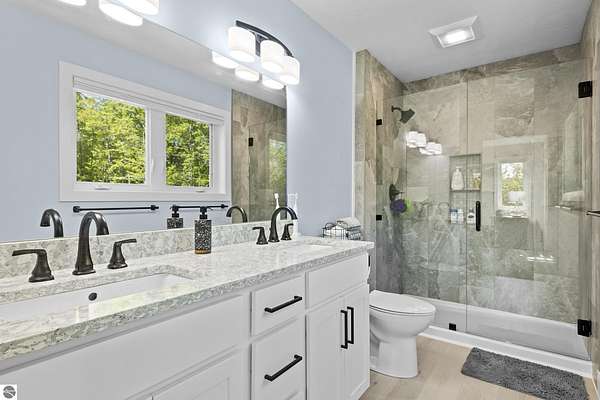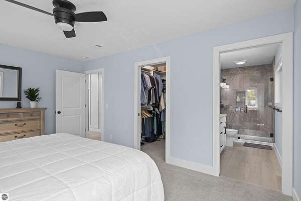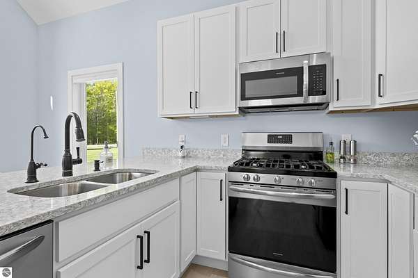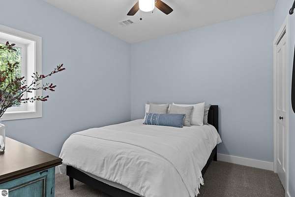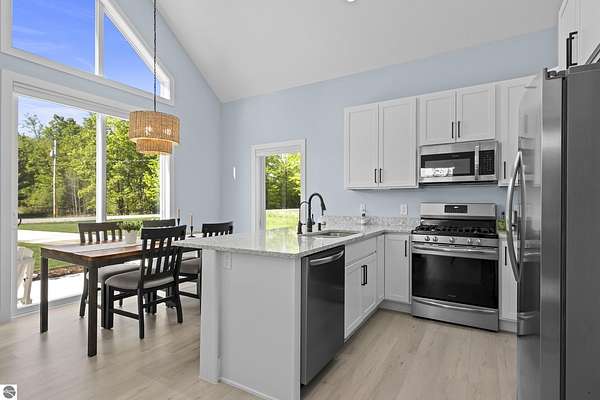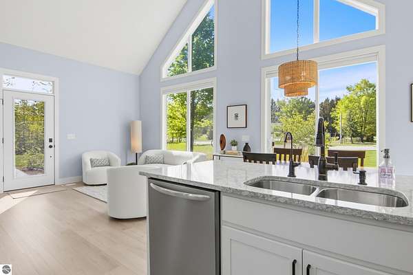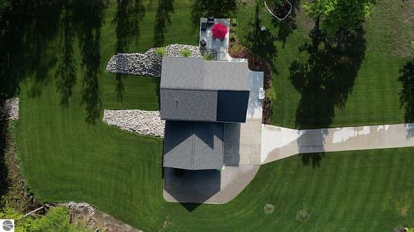 Some homes stand out for what they have. Others stand out for how they feel. This one manages to do both effortlessly. Built in 2022, this home reflects a level of care and intention that’s hard to miss. From the moment you arrive, the setting sets the tone with open skies, mature trees, and a sense of space that immediately feels calm and inviting. Inside, the attention to detail carries through. Vaulted ceilings and expansive windows bring in natural light, creating a space that feels open yet comfortable. The layout has been thoughtfully designed to flow with everyday living where quiet mornings at home or gathering with friends and family are effortless. The main level offers both function and privacy, with a well-placed primary suite set apart from the main living areas, along with a conveniently located laundry space. Additional room upstairs and down provides flexibility for guests, work, or simply extra space to spread out. Step outside and the care continues. A lush, irrigated lawn welcomes you in, while the backyard transitions into a more private, wooded setting. On the east side of the home, a peaceful patio offers the perfect spot to enjoy your favorite beverage and wind down at the end of the day. Practical upgrades add to the home’s long-term value, including an insulated and heated garage and a propane line has been installed for a future generator, offering an added layer of comfort and preparedness. Located just 15 minutes from Traverse City and within the Glen Lake School District, this property brings together quality construction, thoughtful design, and a setting that captures the essence of Northern Michigan living. A home that feels easy to settle into, easy to care for, and ready for what comes next.