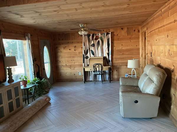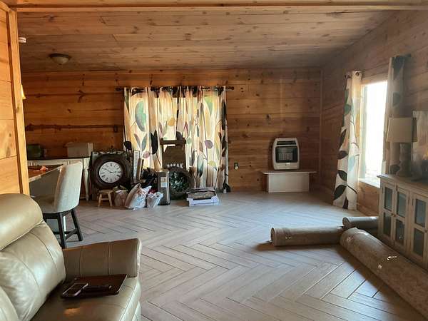 - Drapes/Curtains/All, Fireplace Equipment, Laminate Flooring, Smoke Detector, Some Carpeting