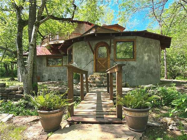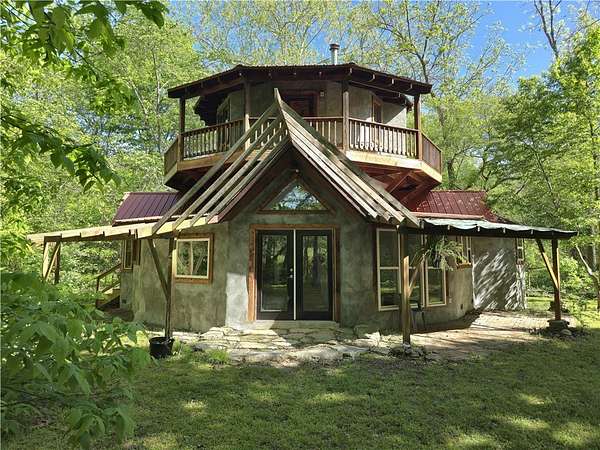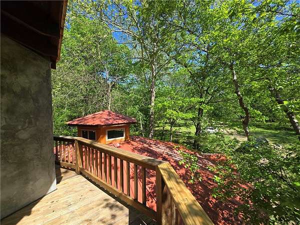 If you're looking for privacy, sustainability, and the freedom to live life on your own terms-this Ozark homestead delivers. This one of a kind off grid home is a craftsman piece of art that is filled with custom finishes and details that have been thoughtfully designed to offer sustainability without giving up comfort. This 16-acre homestead offers freedom with no restrictions or easements, a deep water well into the Roubidoux (987 ft), a seasonal creek, numerous additional building sites, and is nestled at the end of a quiet county road that is located just a few miles from historic Eureka Springs. Inside this amazing home you will find 3 bedrooms, 2 baths, an open concept living, dining, and kitchen, hickory hardwood floors and cabinets, custom tilework, large double pane windows, multiple heat sources, an active fan circulation system, and detailed woodwork throughout. Upstairs, you will enjoy the wrap around deck that is perfect for watching wildlife by the creek. 48 volt solar system. Call for more details!