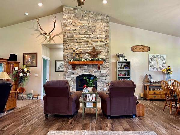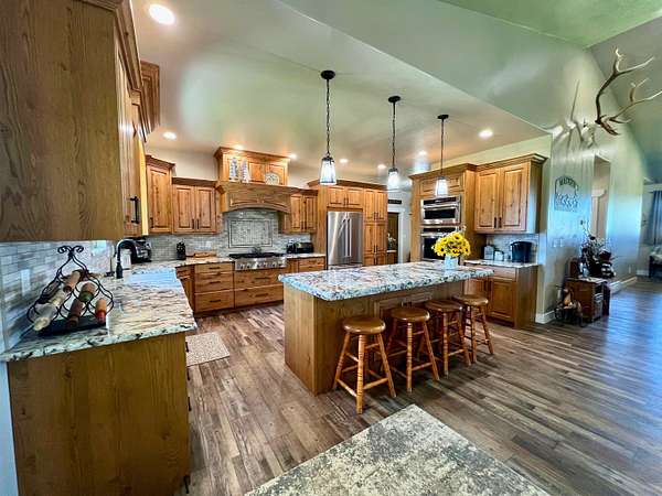 Stunning Custom-Built Country Estate in Grace, Idaho Welcome to this exquisite custom-built country estate, perfectly situated on 2.27 acres in the serene town of Grace, Idaho. This luxurious home offers a blend of modern amenities and rustic charm, making it the perfect retreat for those seeking both comfort and elegance. Key Features: o Main Floor Master Suite: Unwind in the privacy of the spacious bedroom and elegant en suite bathroom. Keep everything organized and easily accessible in the expansive walk-in closet. Escape to the backyard patio through the private walk-out door. o Spacious Living Area: Enjoy plenty of space in the great room, relaxing in front of the beautifully rustic fireplace, and gathering around the table with family and friends. o Gourmet Kitchen: Featuring beautiful granite countertops, custom cabinetry uniquely designed for practicality and elegance, separate pantry for extra storage, a charming white farmhouse sink, and top-of-the-line stainless steel KitchenAid appliances, including a convenient double oven and large 6-burner gas cooktop. o Upstairs Living Area: Theater room, game room, home gym or office, the choices are endless with this incredible space where you'll find thoughtfully placed windows to brighten the large, open great room and convenient kitchenette, a private bedroom with a large walk-in closet, and a classy full bathroom for guests or additional family members. o Inviting Front Porch: Marvel at the magnificent sunsets and take in the beauty of the mountain views on the inviting covered front porch. o Beautiful Backyard and Outdoor Entertaining: Step outside to a private, fenced backyard with a covered patio, and enjoy the built-in gas grill and wood-burning fireplace, perfect for gatherings with family and friends. o Spacious Garage: An extra-large 3-car heated garage provides ample space for vehicles and storage. o Durable Roofing: Heavy duty Lifetime shingles with a transferable warranty ensure long-lasting protection. o Massive Heated Shop: Bring all your boats, RVs, toys, and projects and still have extra space in the 50' x 100' insulated and heated shop which boasts a commercial concrete floor, heavy-duty commercial openers for all four 14' x 14' doors, and a separate room or office space with a useful loft above. This property is a rare find, offering unparalleled craftsmanship and exceptional amenities. Don't miss the opportunity to make this stunning estate your new home. Contact the listing agent to schedule your private tour today!