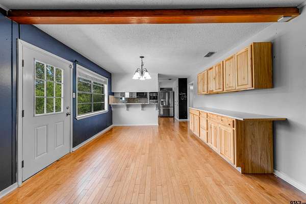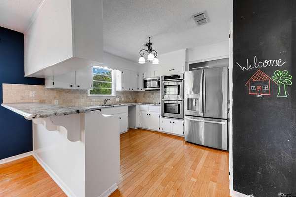 Looking for space, flexibility, and comfort? This beautiful 5-BR, 3-BA home in Westwood ISD offers approximately 2,643 sq ft of living space on 2.43 acres giving you room to live, grow, and enjoy both indoors and out! Step into the welcoming foyer, w/the primary suite conveniently located to the left. The heart of the home features an oversized living room with a stunning whitewashed, wood-burning fireplace, flowing seamlessly into the dining and kitchen areas—perfect for entertaining. The kitchen is equipped w/freshly painted wood cabinetry, stainless steel refrigerator (included), double oven, cooktop, microwave & dishwasher. Updates throughout the home include luxury vinyl plank flooring, fresh interior paint, and newer fixtures such as lighting, ceiling fans & chandeliers. Enjoy added peace of mind w/ recent upgrades, including a furnace (2018) and outdoor A/C unit (2022). The split floor plan provides privacy, making it ideal for guests or multi-generational living. Plus, benefit from 4 Pines community well water as an added bonus compared to city utilities. If you need space inside and out, this home truly has ALL THE THINGS!