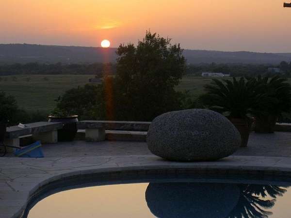 From Hwy 281 and Hwy 29 in Burnet, east on Hwy 29 for 1.6 miles, right through gate, follow road up and to the right through metal pergola that says "WELCOME".