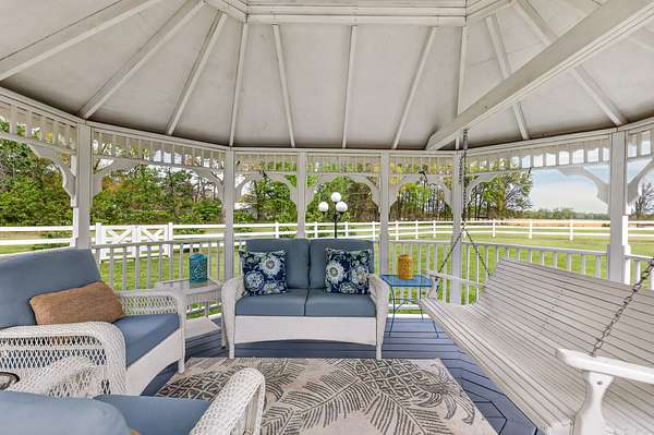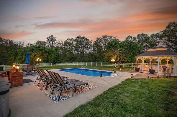 Step outside to your own backyard retreat featuring a 14 x 28 in-ground chlorine pool (up to 6 ft deep), two gazebos, and all pool equipment remaining. A storage shed adds even more functionality.