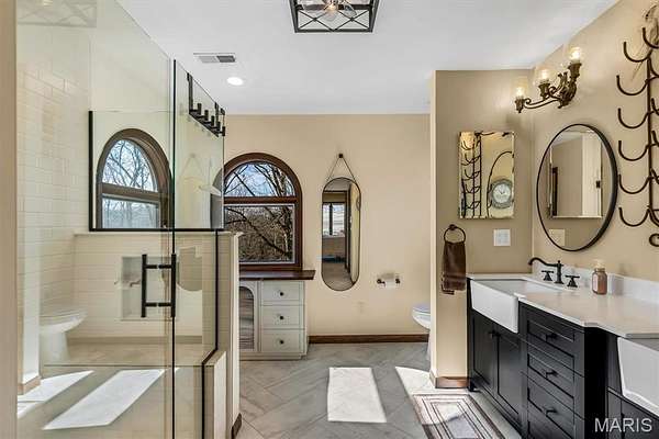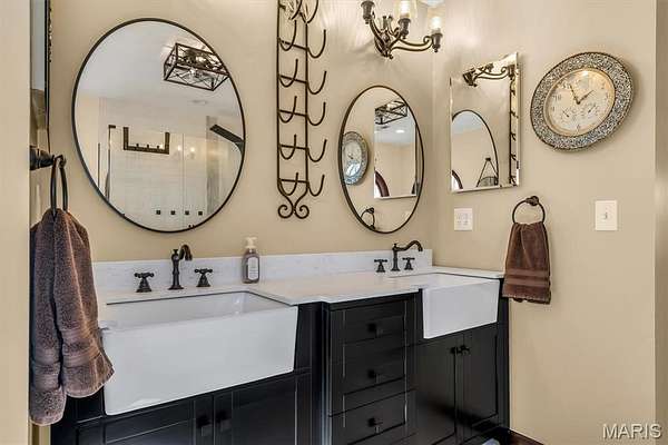 The lower level is designed perfectly for entertaining on a large scale. This massive open finished basement provides endless possibilities for a game room, media center, or social hub. It features a second fireplace for a warm and inviting atmosphere and includes an additional full bathroom for guests. The space walks out directly to a scenic backyard and a custom patio featuring a built in fire pit and an additional porch area.