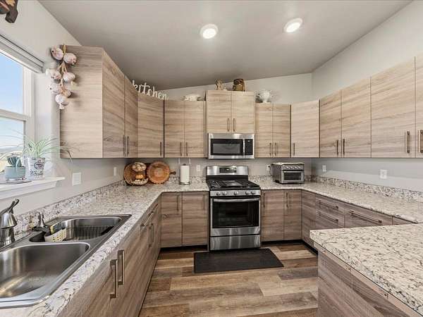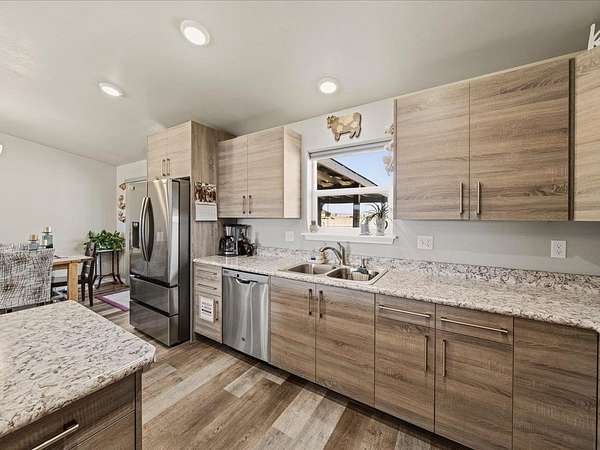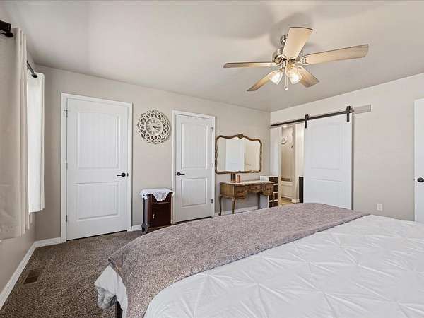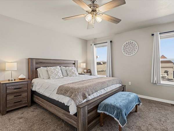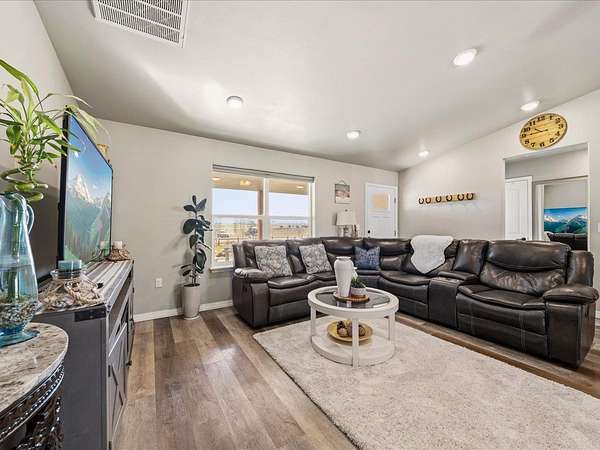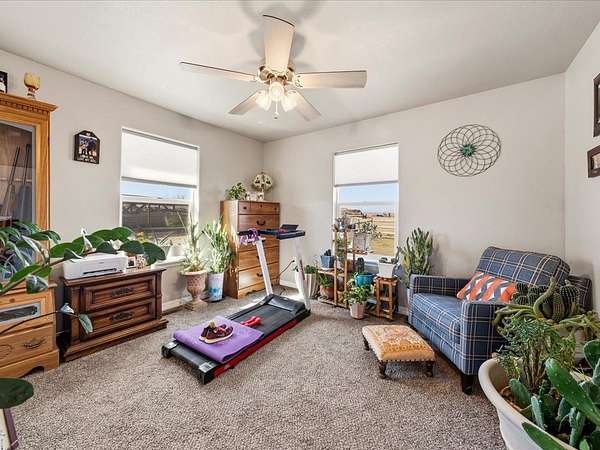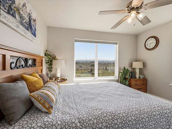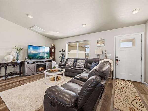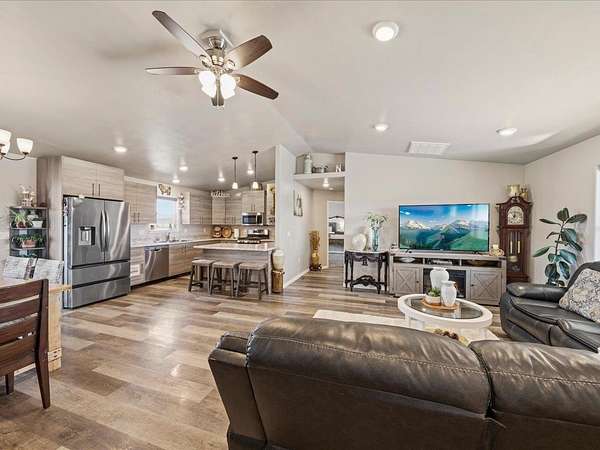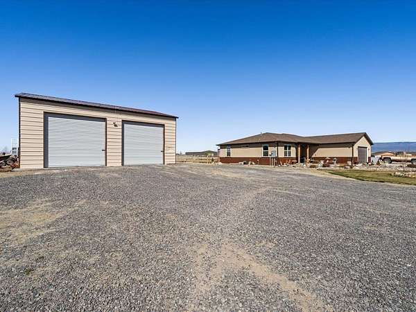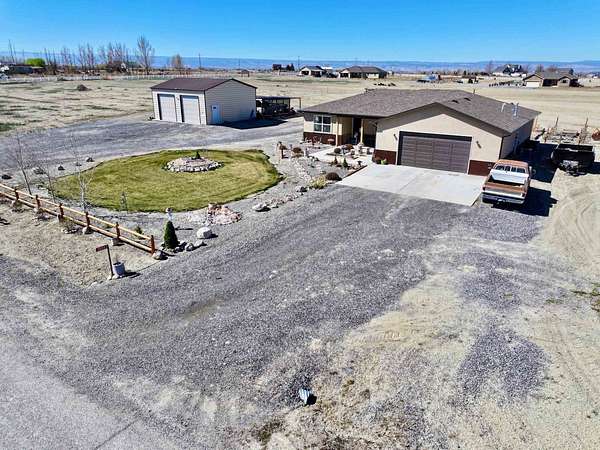 Welcome to this beautifully maintained newer home set on 1.8 acres, where comfort, functionality, and wide-open space come together with stunning 360-degree views. This property offers the perfect balance of rural charm and modern convenience, complete with irrigation water to keep the land lush and productive. The thoughtfully designed layout features multiple walk-in closets, a spacious primary suite with a walk-in shower, and an attached two-car garage. In addition, the impressive 30' x 28' shop is heated with a wood-burning stove which provides the perfect space for hobbies, storage, or a workshop along with covered parking for up to six vehicles. Step outside to a fully fenced backyard ideal for pets or gatherings, enhanced with solar lighting along the fence for added ambiance. The outdoor space is a true highlight, featuring raised garden beds, mature fruit trees including apple, nectarine, peach, and plum, as well as blackberry bushes and established grapevines which is perfect for those who appreciate homegrown living. A chicken coop completes the country lifestyle feel, while beautiful aspen trees in the front yard add character and a welcoming first impression. With plenty of room to expand, this property offers endless possibilities. Whether you're dreaming of additional structures, expanded outdoor living space, or simply enjoying the privacy and panoramic surroundings. If you've been searching for a move-in ready home with land, views, and versatility, this one truly checks all the boxes. HOA is only for irrigation water, which is optional for homeowners. Current owner pays for irrigation water which is about $50 per year.