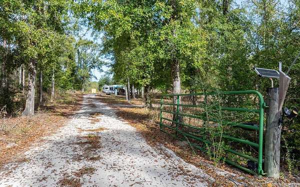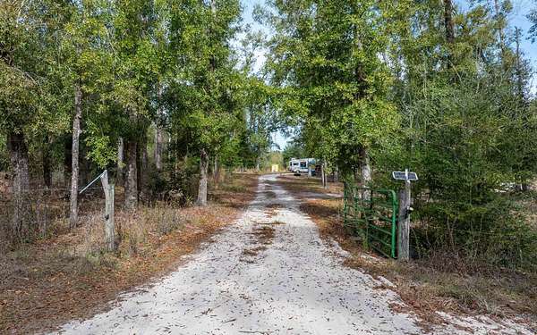 This improved 5-acre property in Flood Zone X is ready for your RV and building plans. It features a partially cleared lot with a circular driveway, partial fencing, and automatic gated entry for security. Utilities are set up, including well, septic, power, plus a 50-amp RV hookup. A 12x20 insulated shed with power, water, small refrigerator and washer/dryer is included for storage or hobby space. Deed restrictions allow RV use for up to 180 days per year (buyer to confirm permits needed from zoning). The subdivision permits both site-built and manufactured homes. Located just off a graded road near I-10 and 20 minutes from downtown Live Oak, this property is ideal for a weekend retreat, seasonal RV use, or future home. Seller unable to close before March 1, 2026